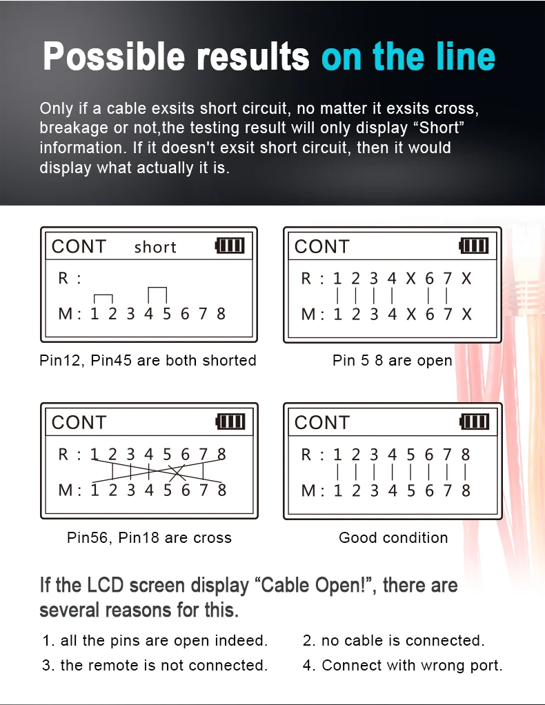 NOYAFA Probador de Cable de Red, Herramienta de Prensado Ethernet, Probador de Cable Lan, Rastreador de Cable, Buscador de Cable, RJ45, 1 Unidad, 2 Unidades