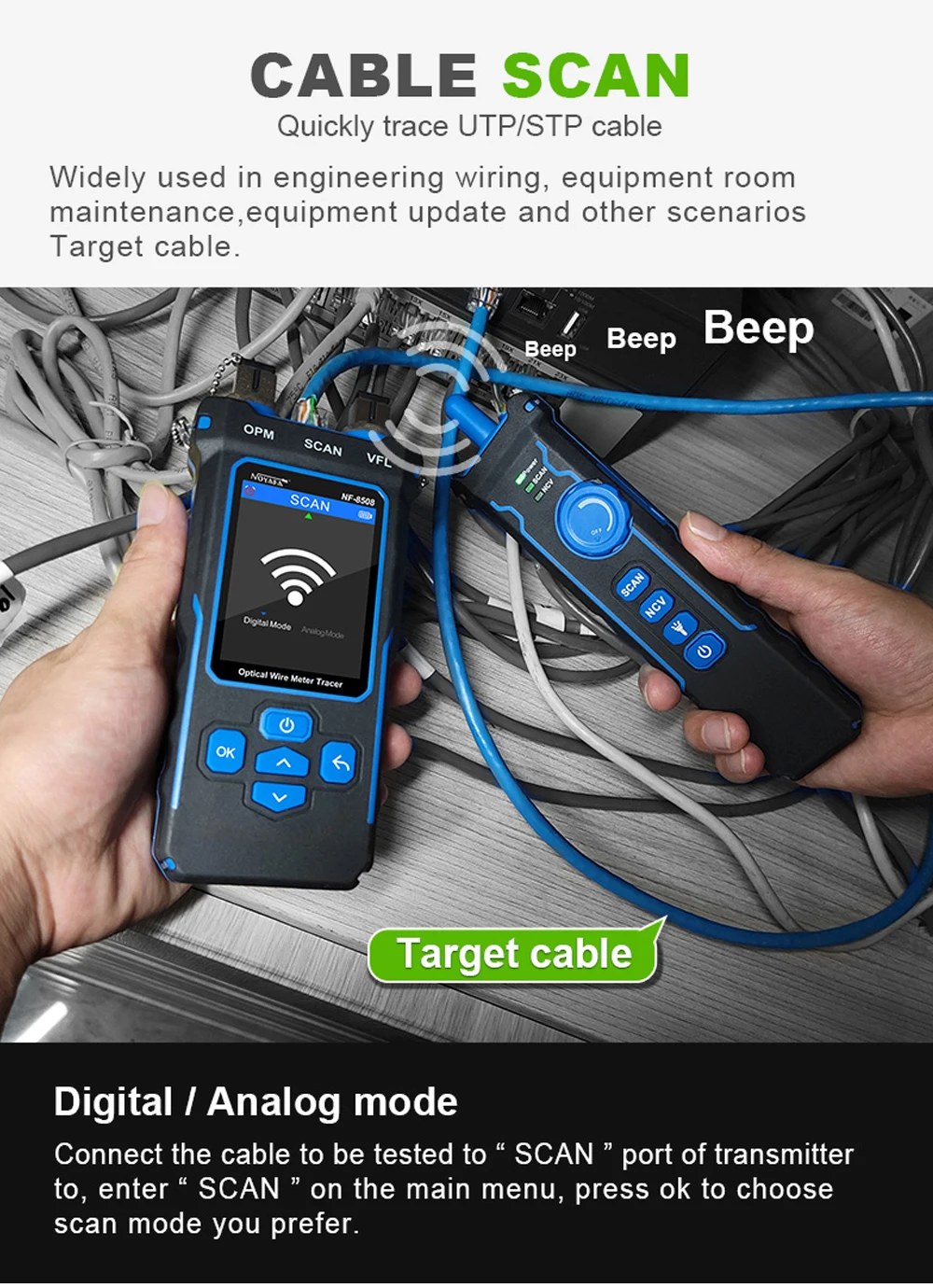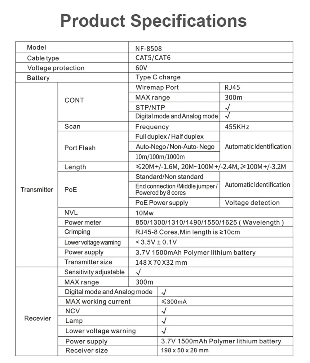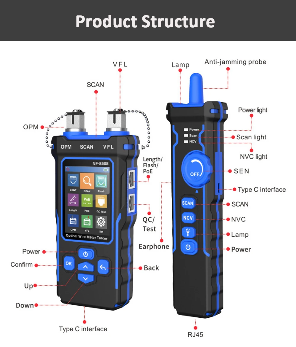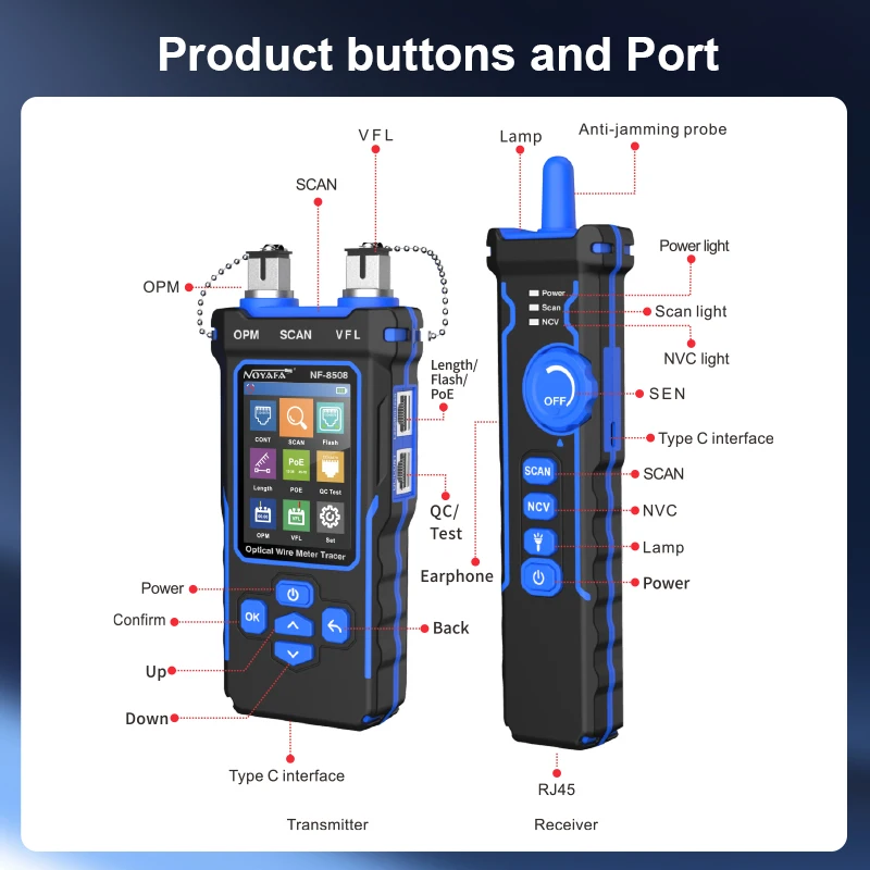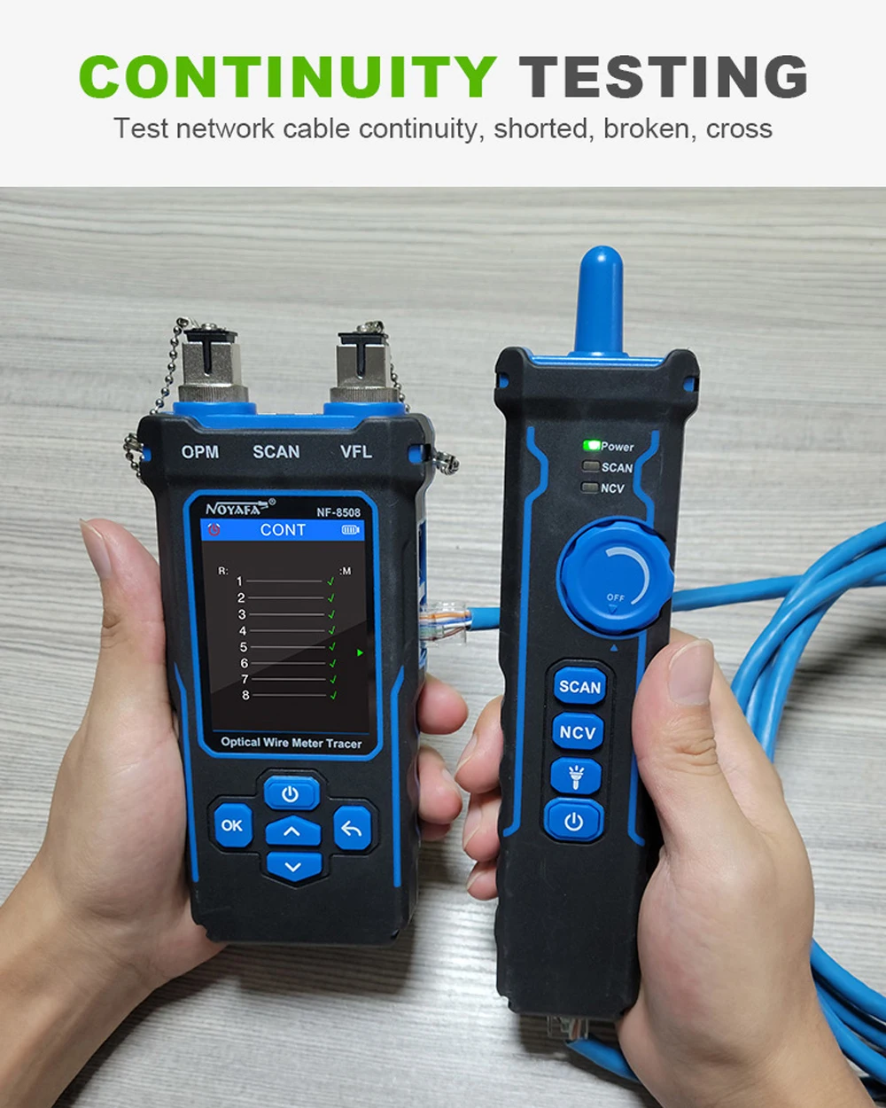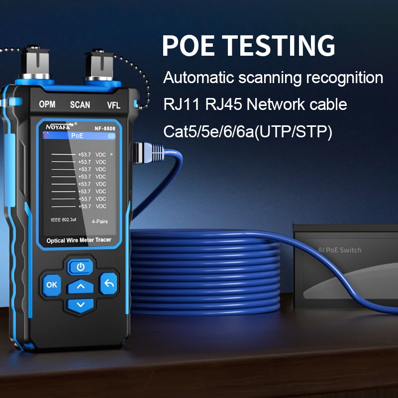 Comprar Noyafa-probador de Cable de red de NF-8508, rastreador de Cable con pantalla LCD Digital, OPM VFL PoE, RJ11, RJ45, buscador de línea, herramientas de red