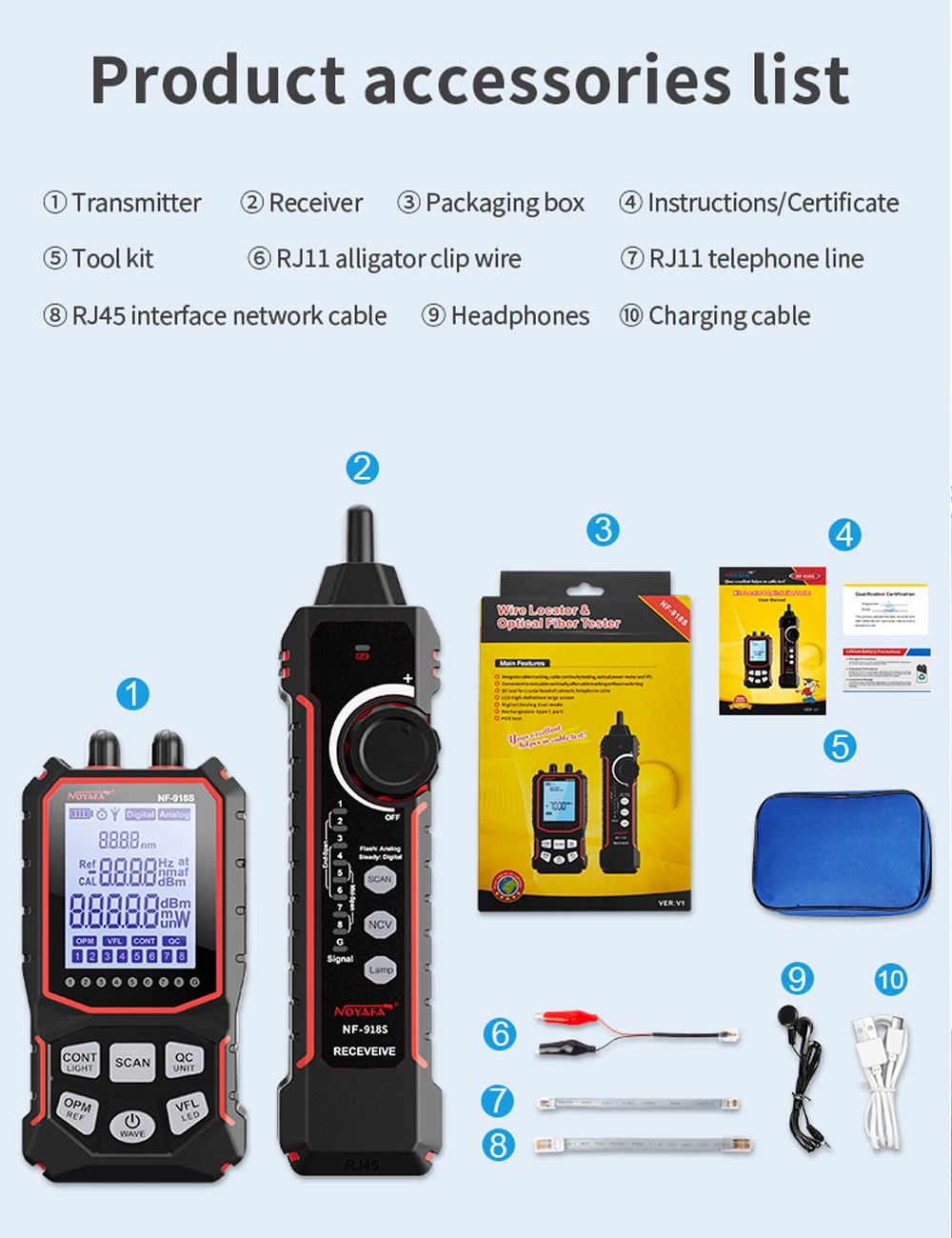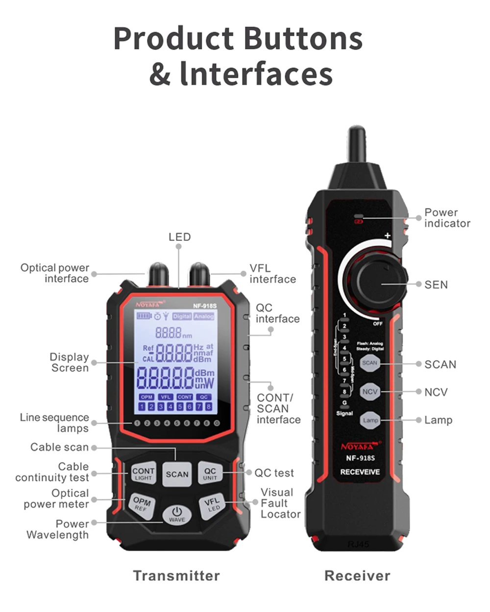 Comprar Noyafa-probador de cables de red, pantalla LCD, rastreador de cables, NF-918S, comprobador PoE, medidor de potencia óptica, localizador Visual de fallos, herramientas de red