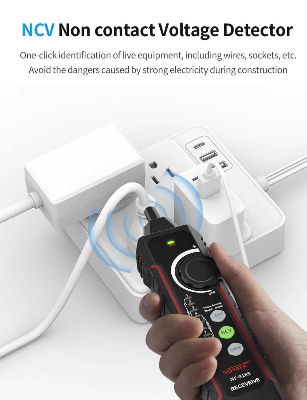 7.【Función NCV】 Si hay alimentación de CA superior a 40 V, el receptor emitirá un sonido de "bip".