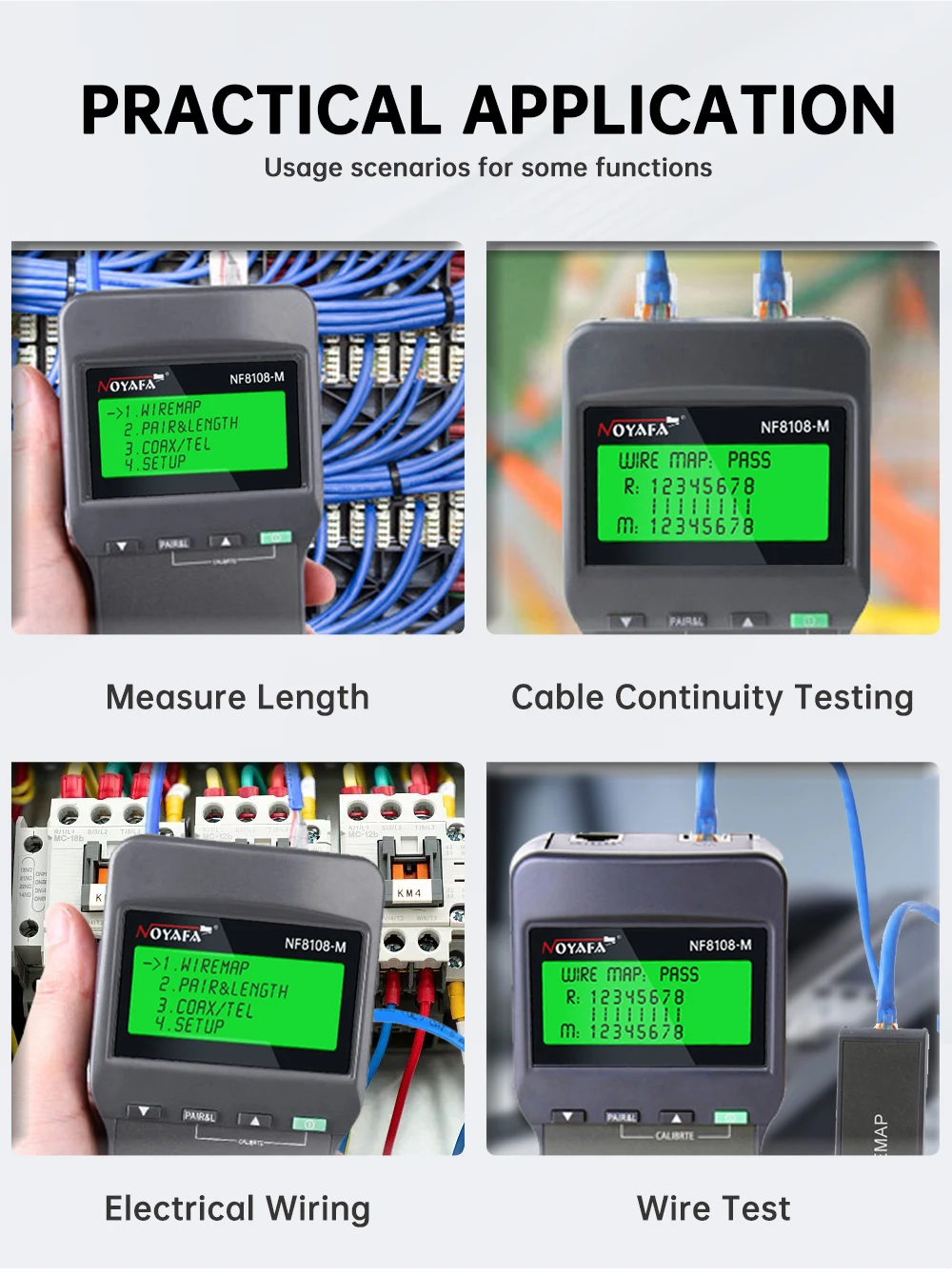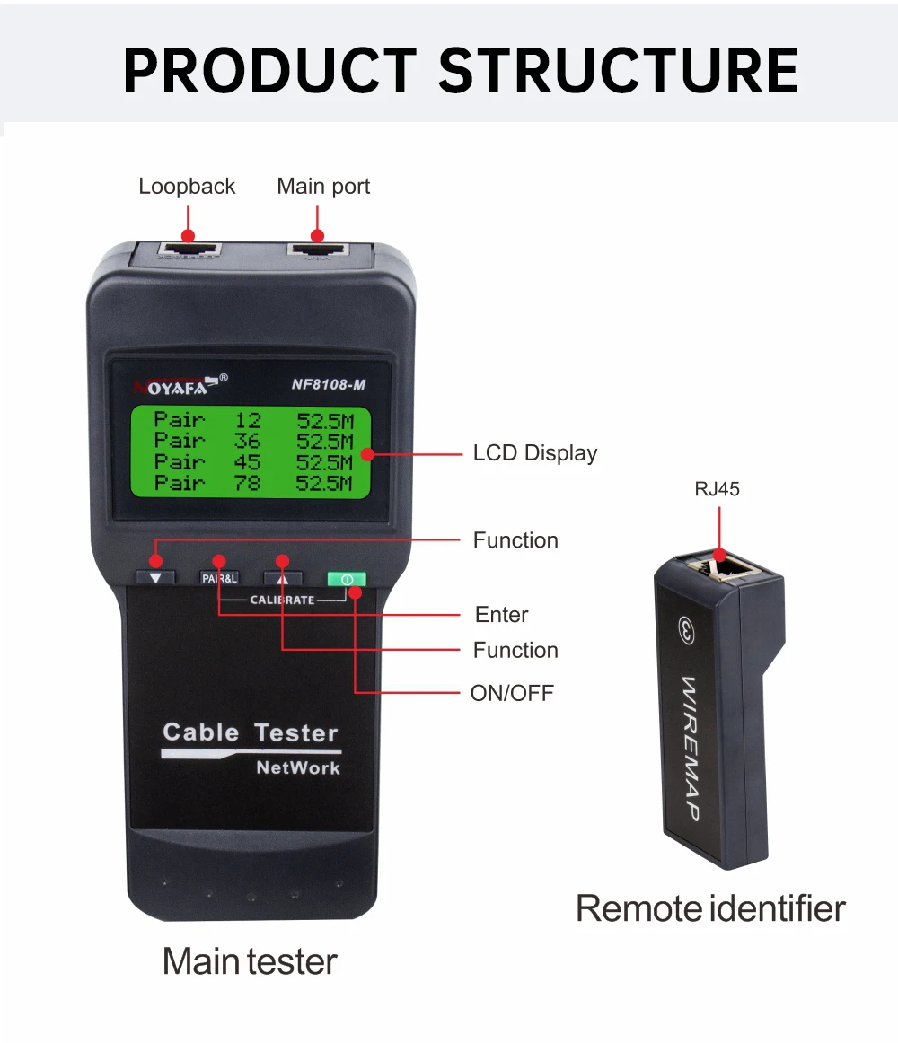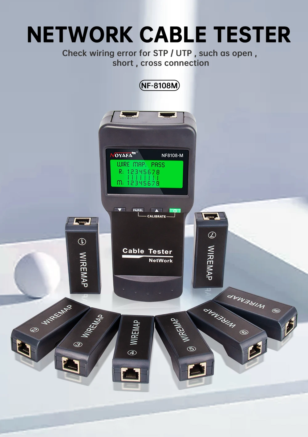 Comprar NOYAFA probador de Cables de red, rastreador de Cables con 8 medidas remotas, probador de longitud, herramientas de red para Cables trenzados gemelos STP/UTP