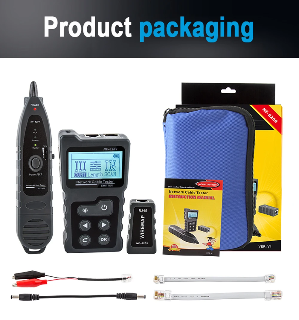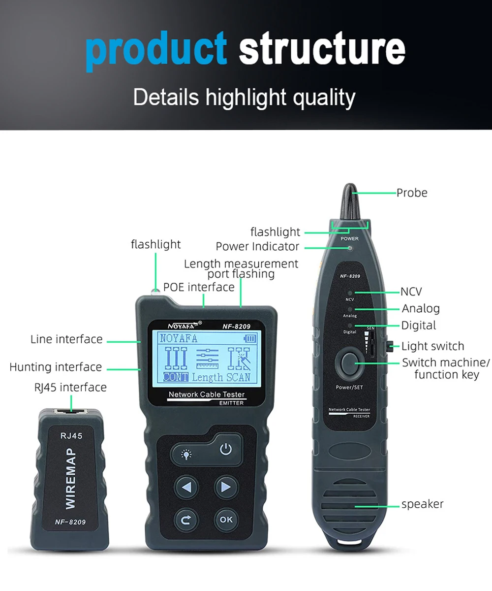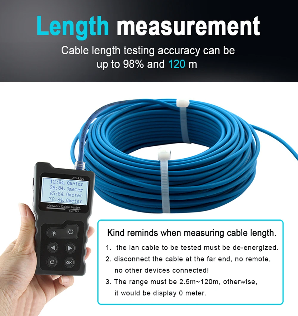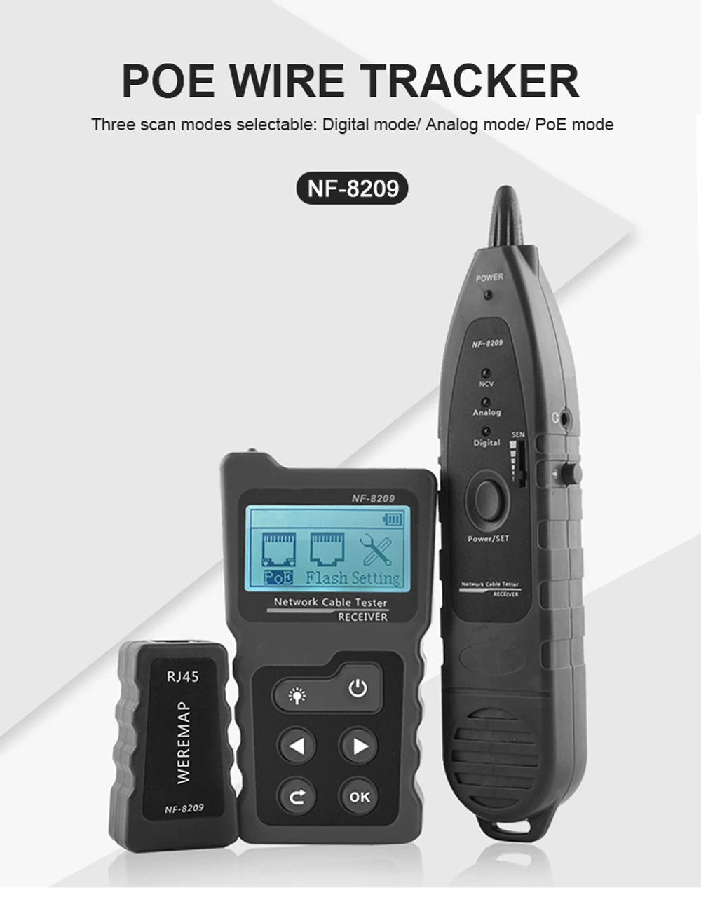 Comprar NOYAFA-rastreador de cables de NF-8209, probador de Cable de red con pantalla LCD, medida de longitud, probador de mapa de cables Cat5 Cat6 PoE, herramientas de red
