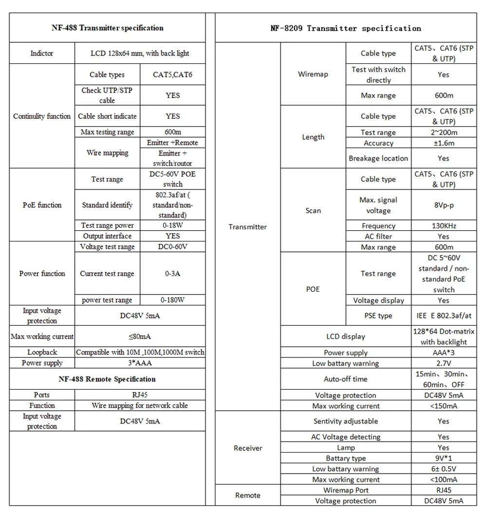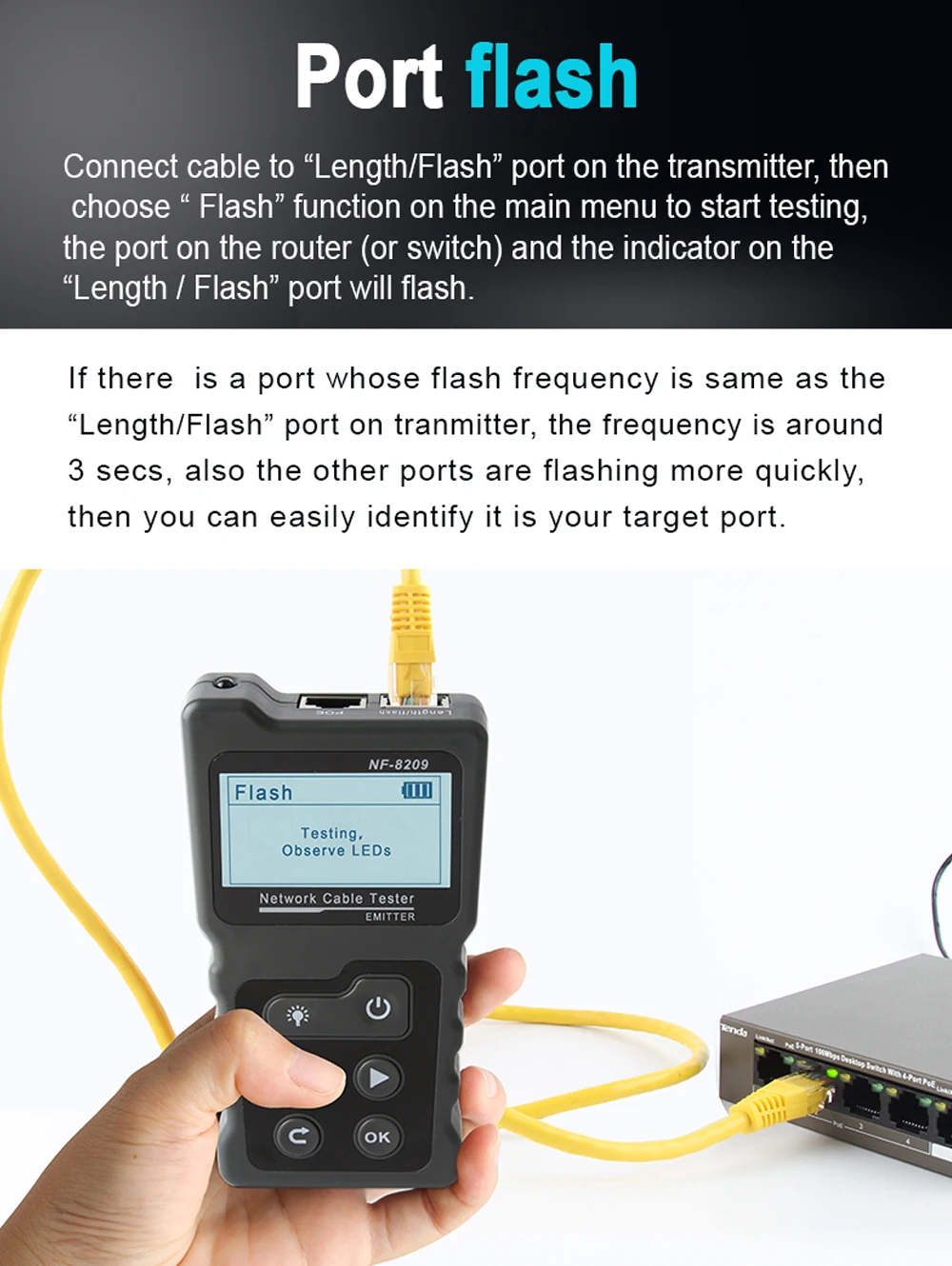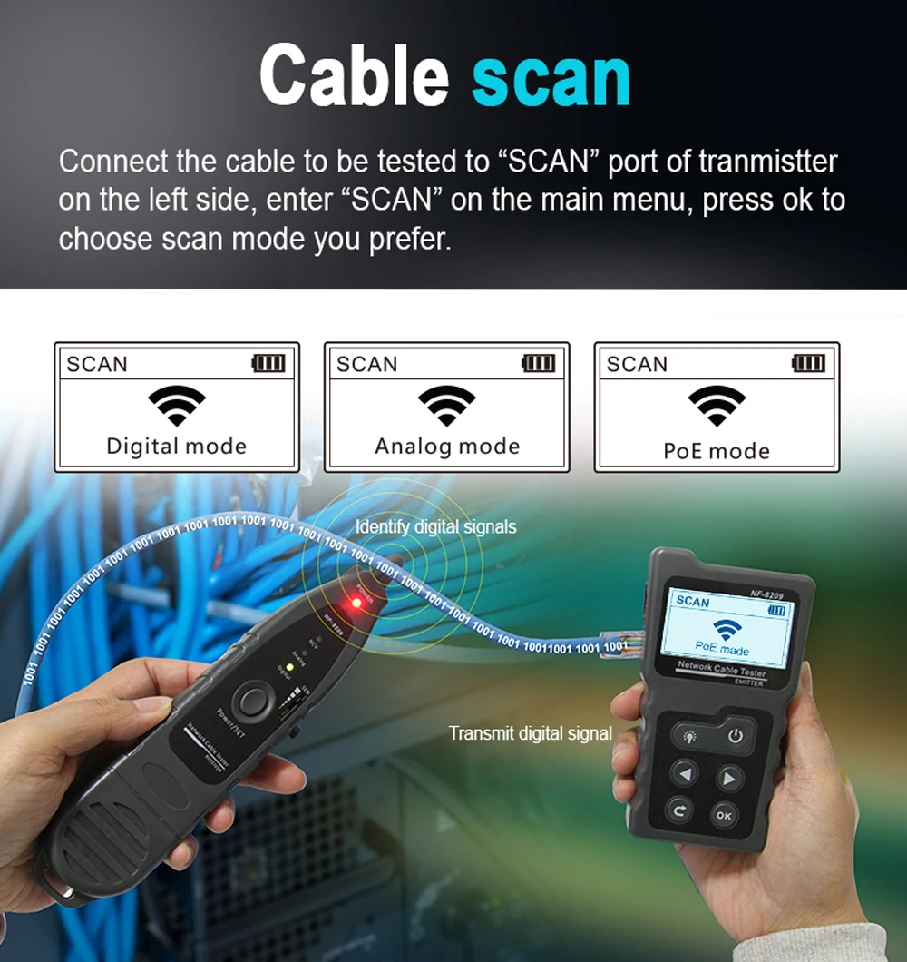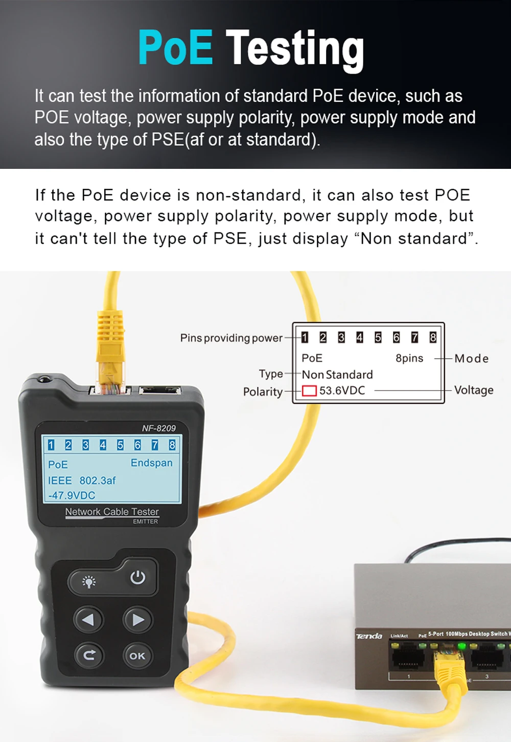 Comprar NOYAFA-rastreador de cables de NF-8209, probador de Cable de red con pantalla LCD, medida de longitud, probador de mapa de cables Cat5 Cat6 PoE, herramientas de red