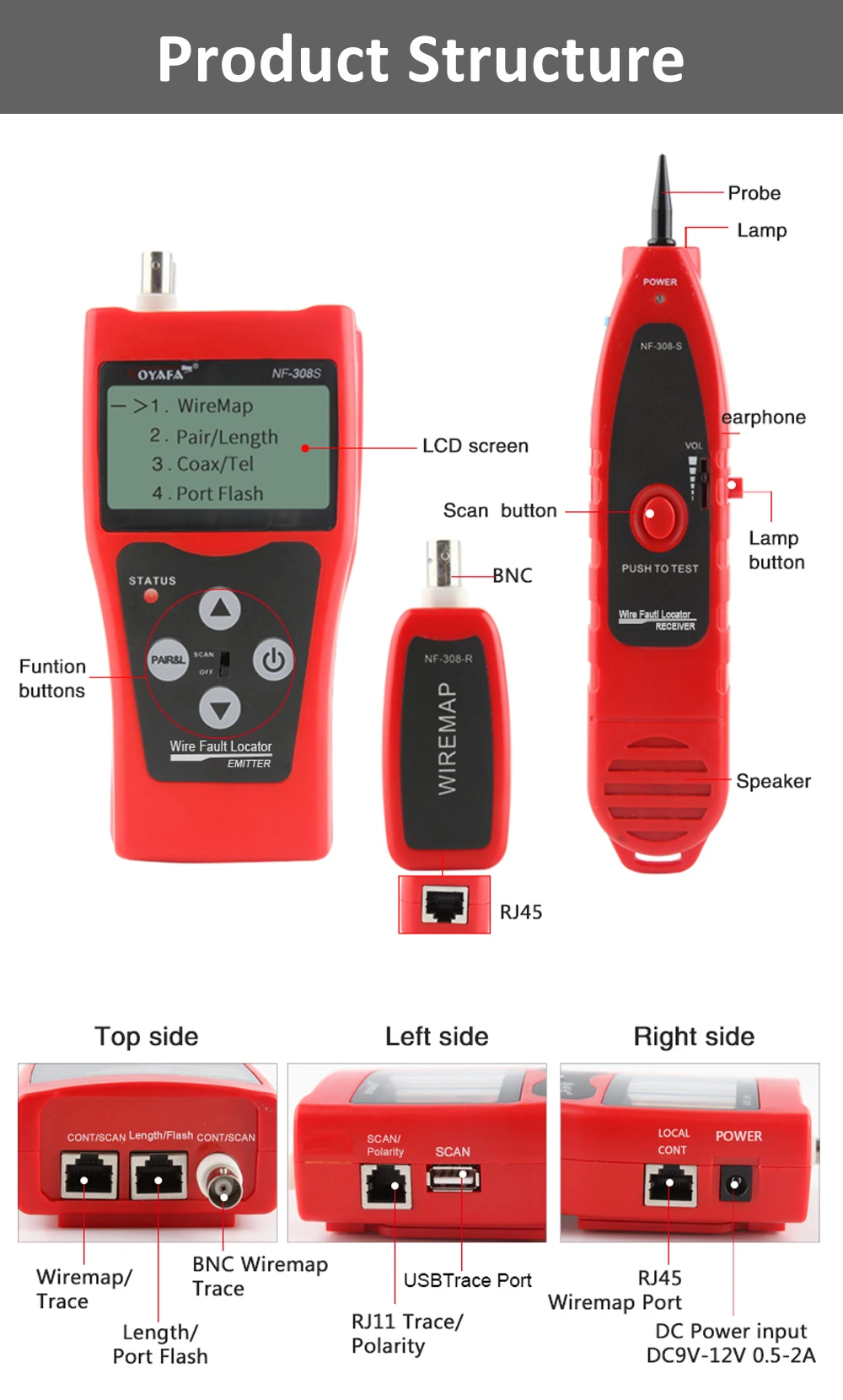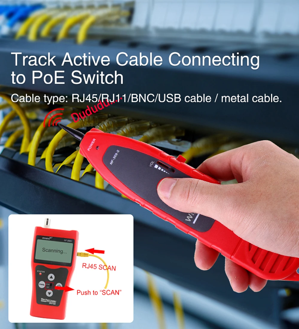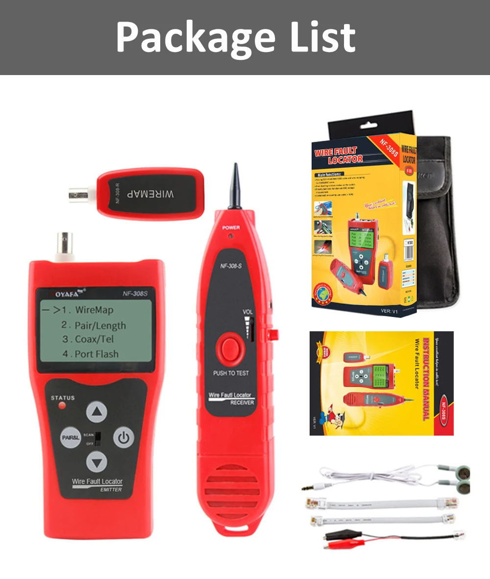 2. Testez l'état de connexion deCâble RJ11, RJ45, BNC, Tels queCircuit ouvert, court-circuit, crossover,Connexion inverse, et emplacement de déconnexion du câble, et affichage intuitif sur l'écran LCD.