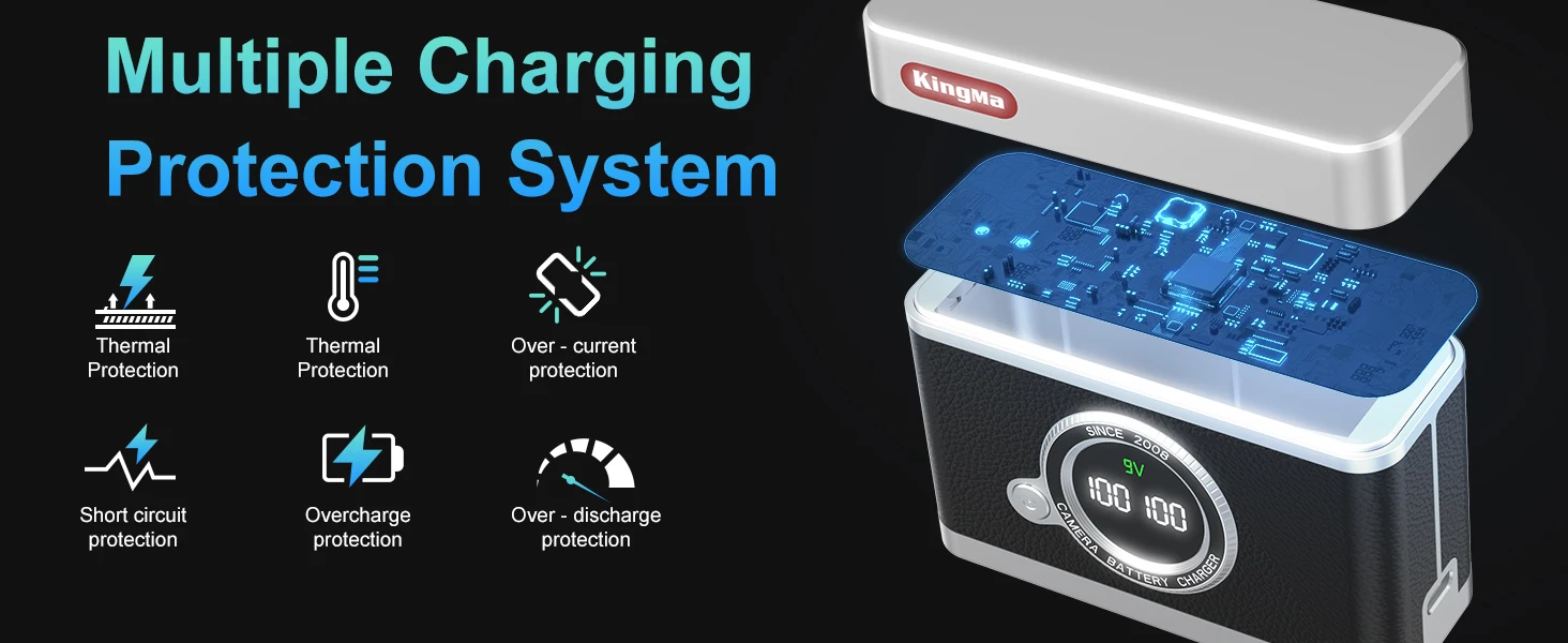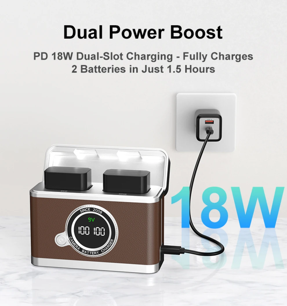 Elimina las conjeturas al cargar.La pantalla LCD nítida muestra el estado de carga en tiempo real de cada batería de forma independiente, mostrando el porcentaje exacto y el modo de carga (Rápido/Estándar).Esta administración visual de energía le permite planificar con precisión sus tomas, decir adiós a la ansiedad por el poder y garantizar que su flujo creativo nunca se interrumpe.