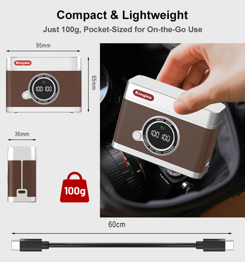 Más que un simple cargador, es tu compañero de viaje perfecto.El cuerpo compacto de bolsillo funciona como cargador dual y como estuche protector para dos baterías.Una tapa magnética segura evita que las baterías se caigan en la bolsa de la cámara.Enciéndelo en cualquier lugar a través del puerto USB-C universal usando un tomacorriente de pared, un cargador de automóvil, un banco de energía o una computadora portátil.