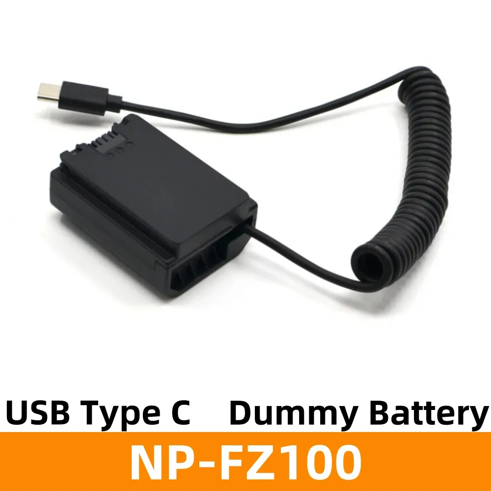 NP FZ100 batería simulada adaptador USB C Cable de resorte acoplador CC FZ100 para cámara Sony Alpha A7M3 A7M4 A6600 A9 II A7R III 7M3K ILME-FX30