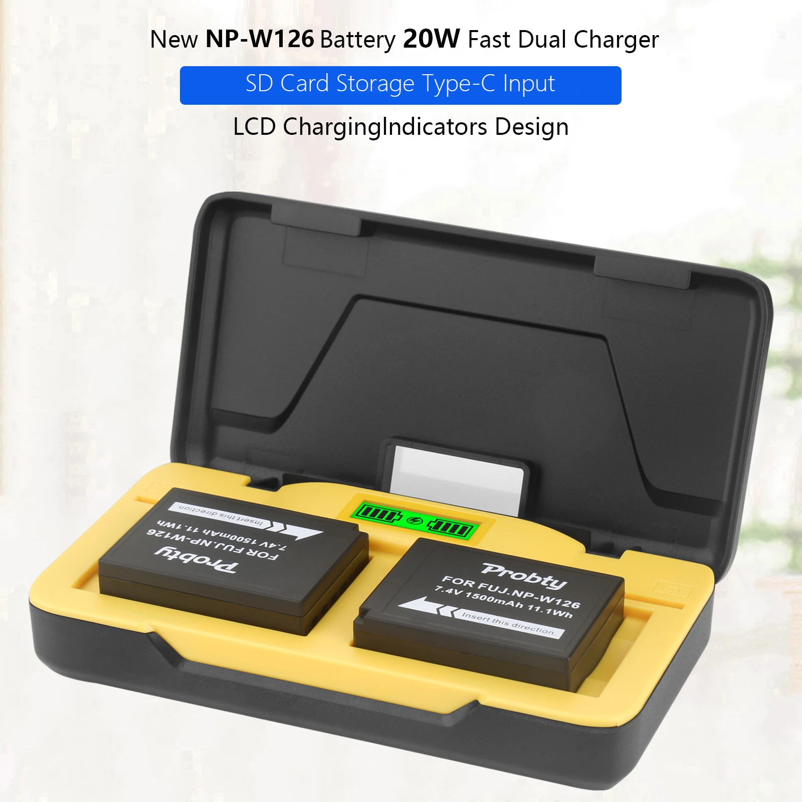 Comprar NP-W126 NP-W126S cargador de batería 20W carga rápida con ranuras para tarjetas SD para cargador de batería Fujifilm BC-W126S para batería de NP-W126S