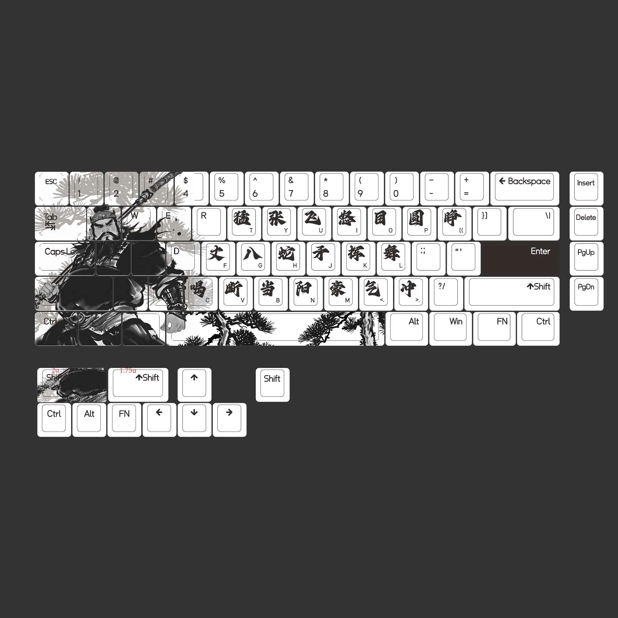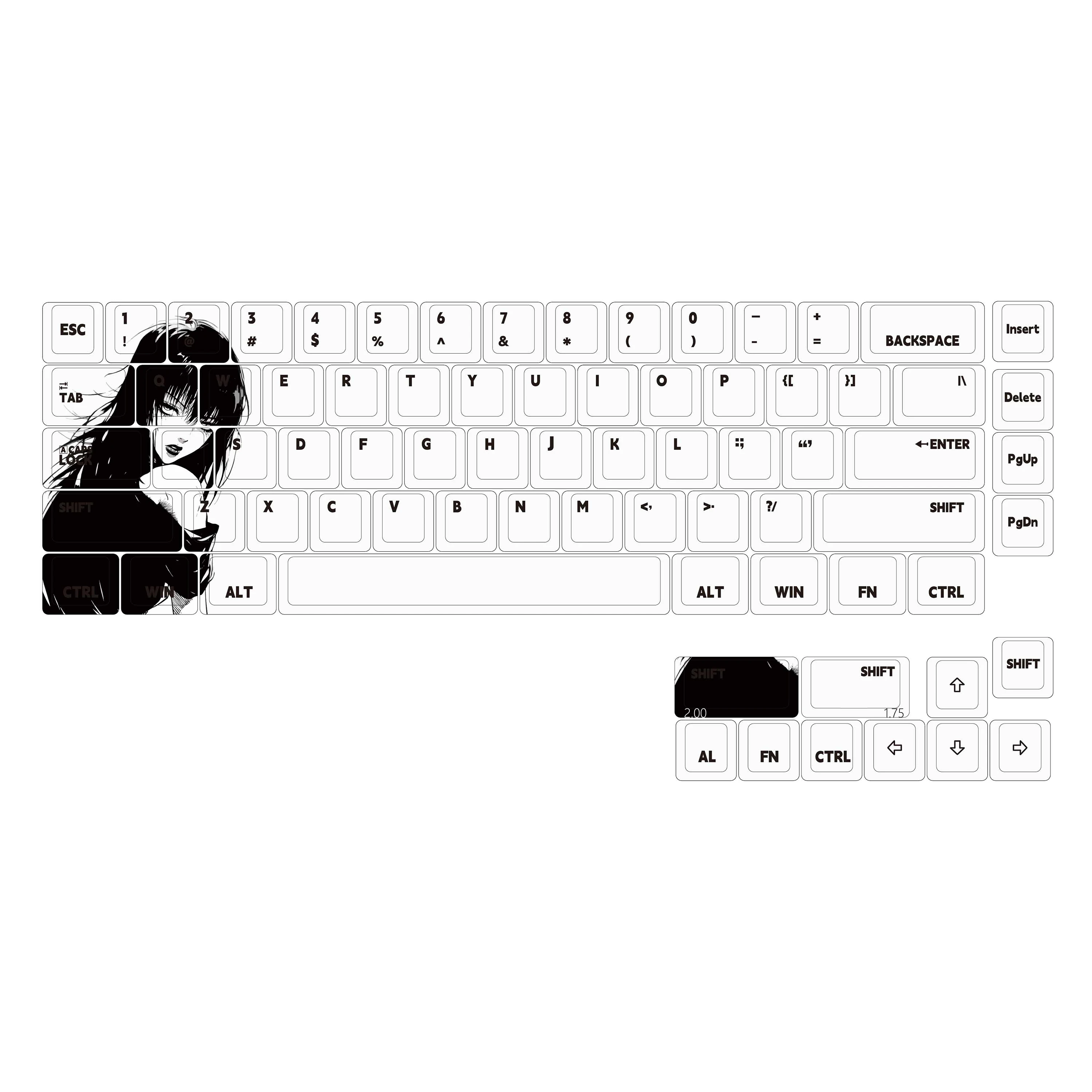 This is just a keycap, the displayed keyboard model is MAD 68HE, and the appearance is redesigned and repainted by our fans.75Key supports most 60% -65% layout mechanical keyboards.