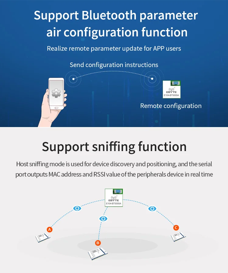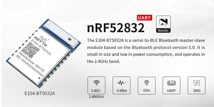Comprar NRF52805 nRF52832 nRF52811 E104-BT5032A BT5010A BT5011A BT5005A 2,4G comunicación de puerto serie BLE5.0 Bluetooth 5,1 módulo IoT