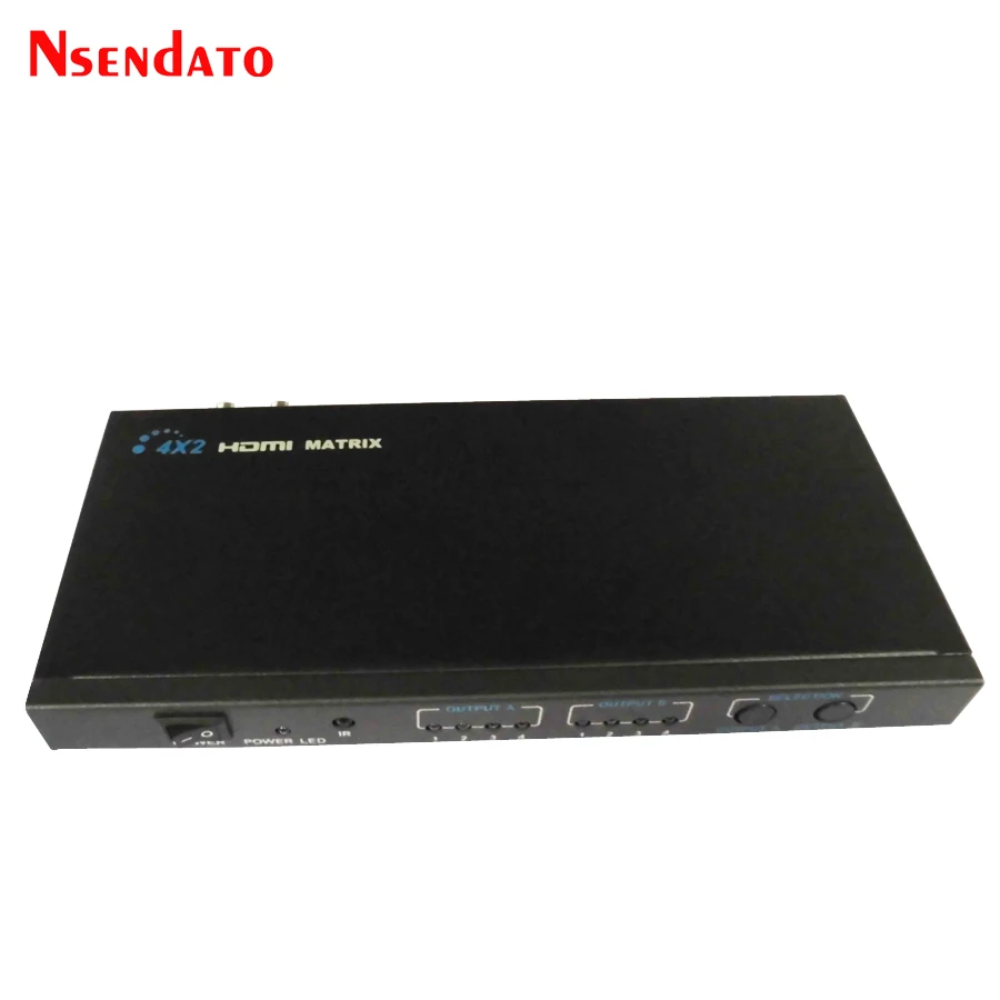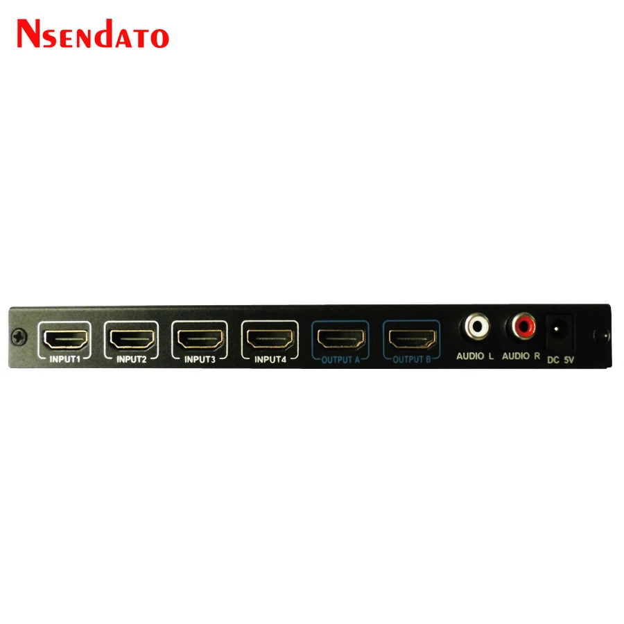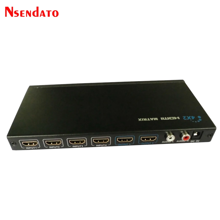 Nsendato HDMI Matrix 4x2 Splitter Switch Converter 4 in 2 out L/R RCA salida de Audio Switcher Splitter con control remoto IR