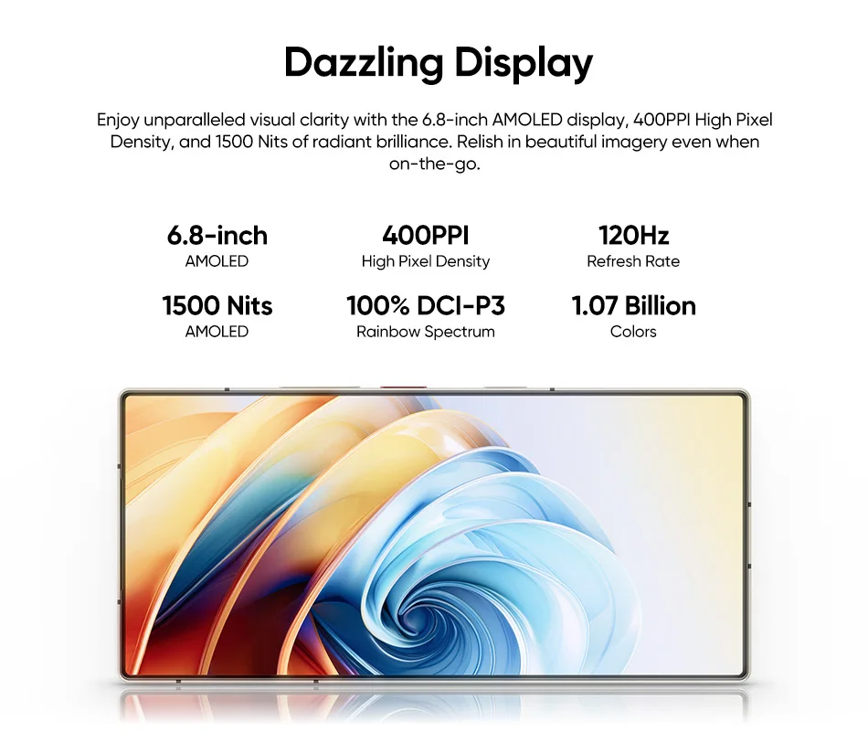 Pantalla ---Pantalla de barra flexible AMOLED de 6,8 pulgadas y 120Hz; 1500nit