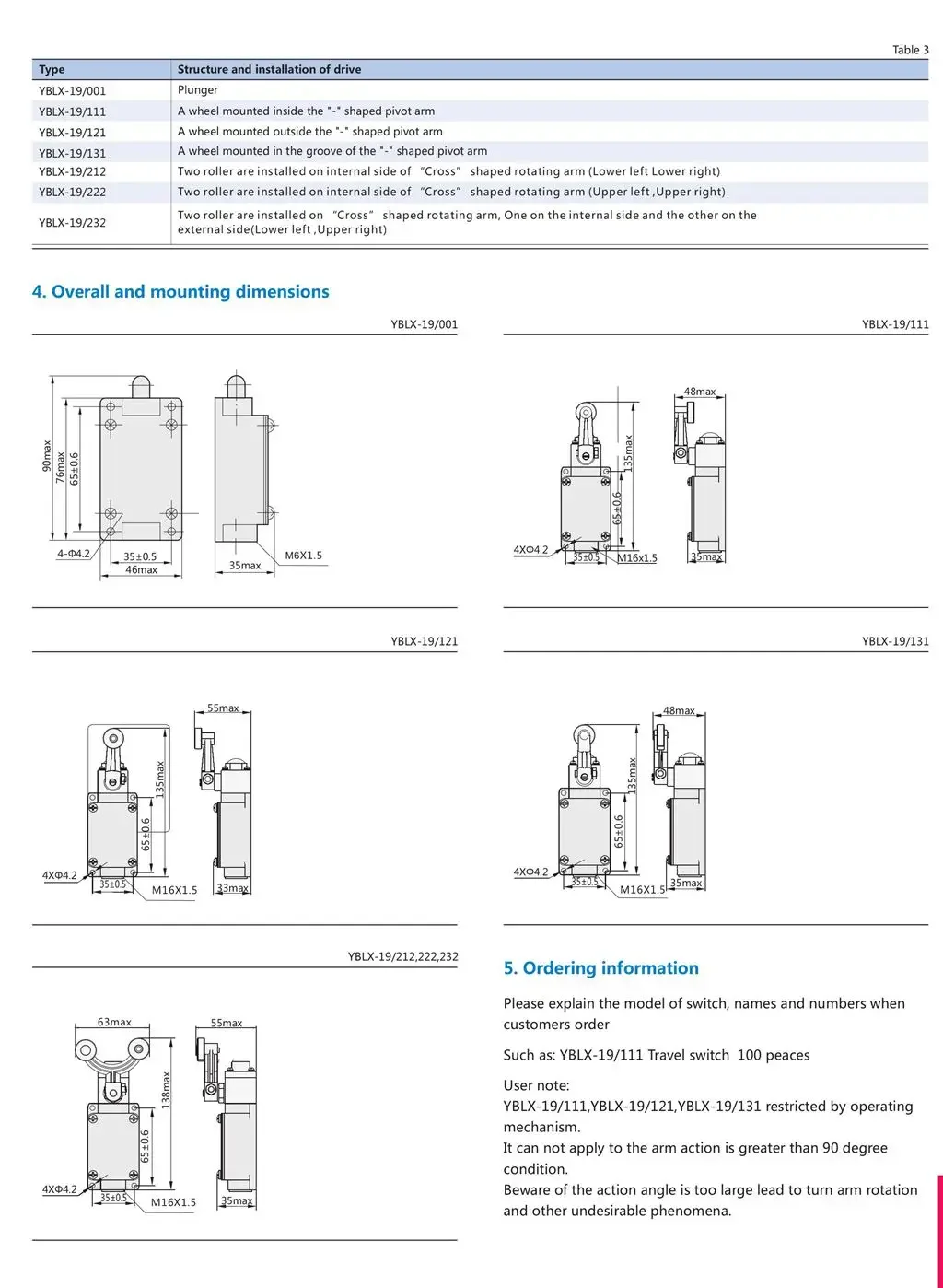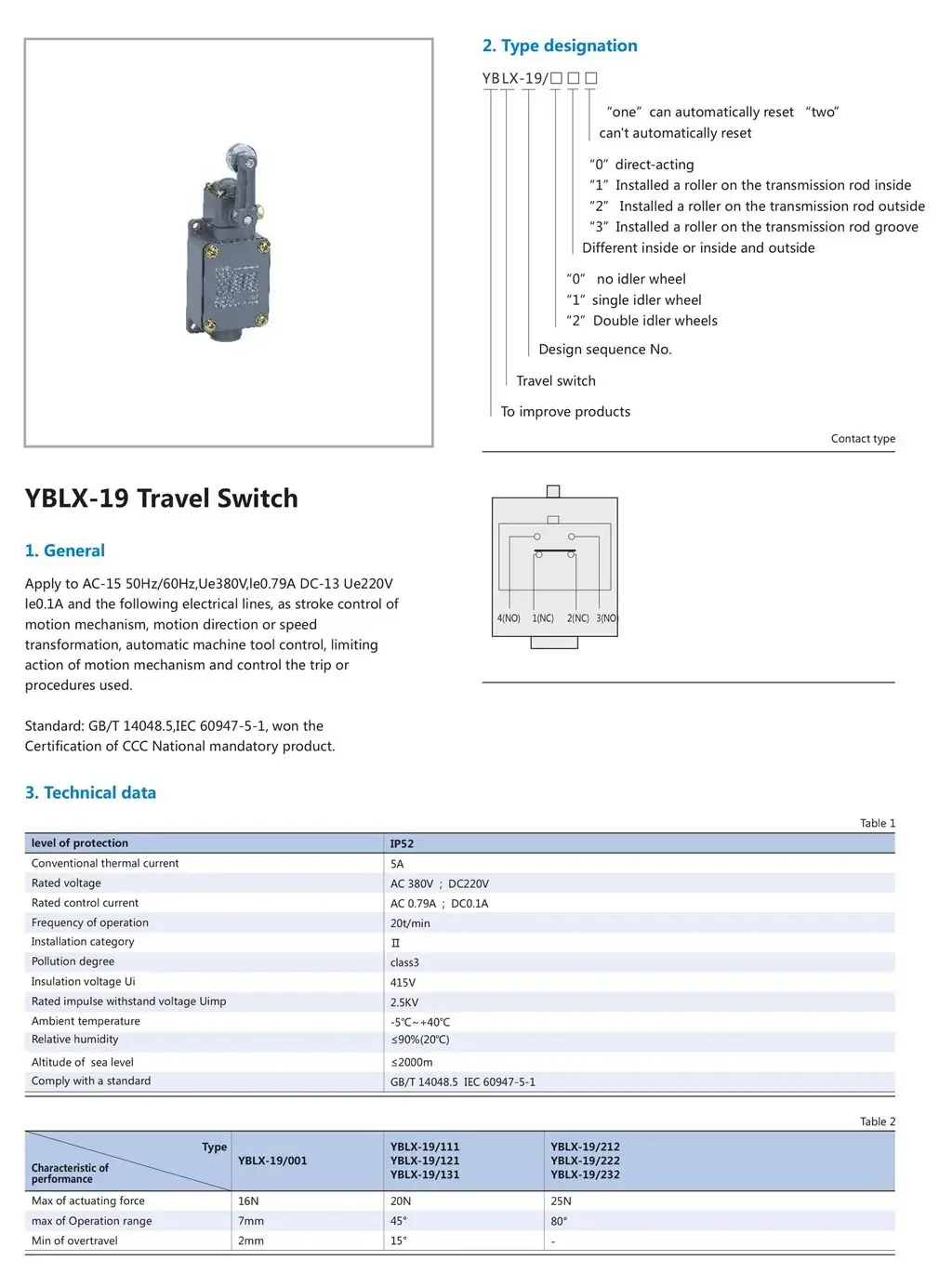 Núcleo de interruptor de carrera CHINT YBLX-19/K Microinterruptor de núcleo de interruptor limitado
