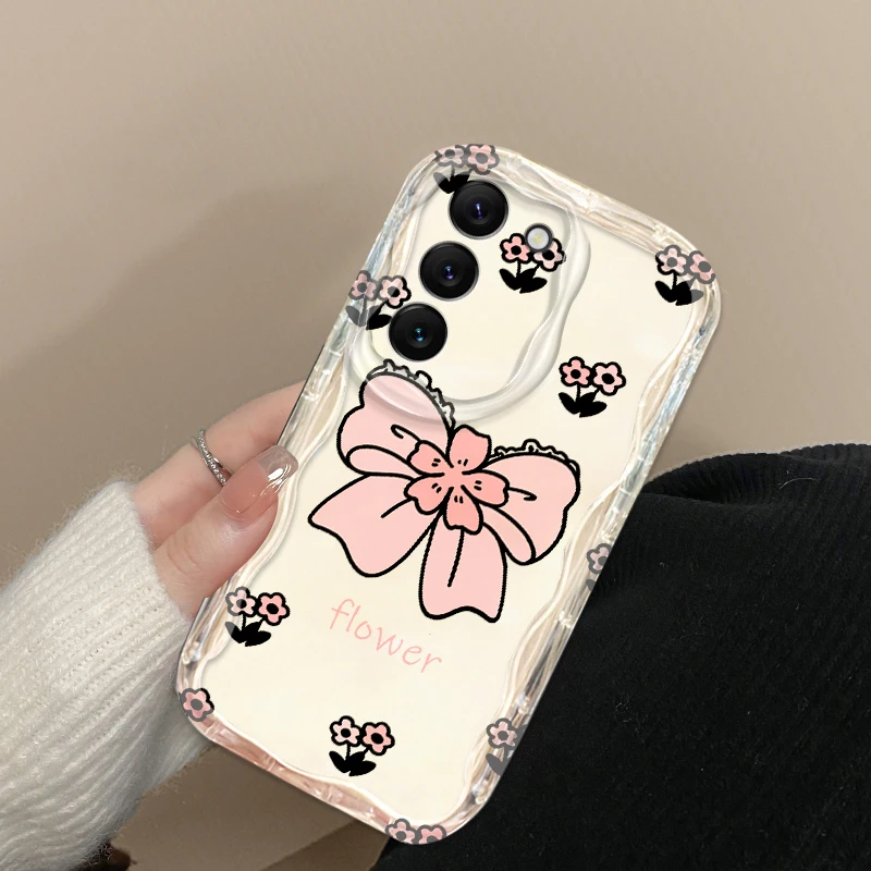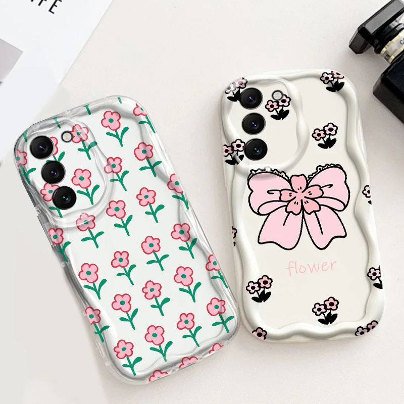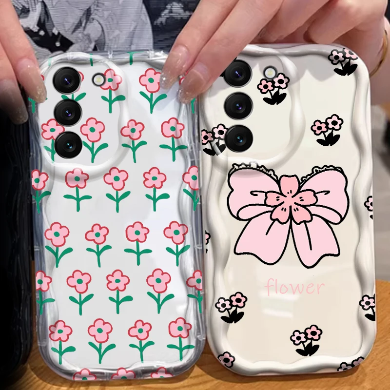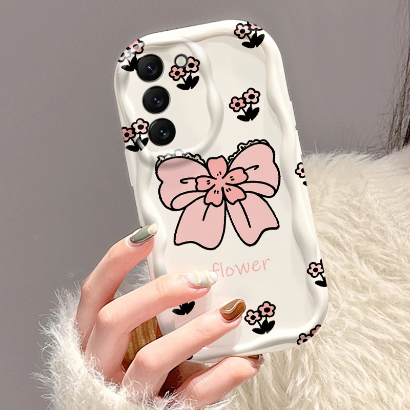 Nudo de mariposa de dibujos animados de flores para Samsung S24, S23, S21, S20 Ultra Plus FE, A73, A72, A71, A51, A31, A05S, A05, A04, cubierta de aceite de onda 5G