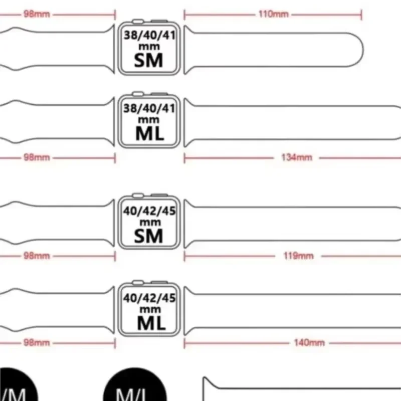 42 mm=44 mm=45 mm=49 mm; 38 mm=40 mm=41 mm