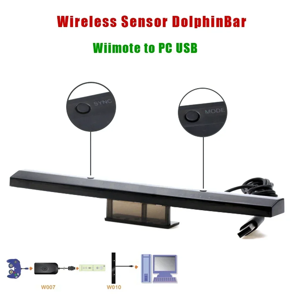 Nueva barra de Sensor inalámbrico MayFlash DolphinBar para controlador de juego inalámbrico remoto Wii para PC compatible con Bluetooth para GCEl sensor inalámbrico Dolphinbar se puede conectar el controlador Wii Remote Plus a su PC mediante el controlador Nunchuk y el controlador Wii Classic. Admite cuatro modos de trabajo: