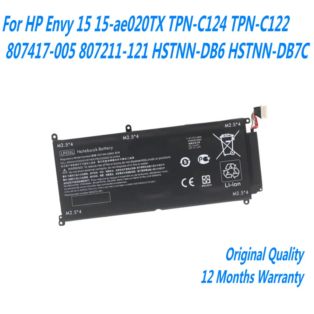 Comprar Nueva batería de ordenador portátil 11,4 V 48WH LP03XL para HP Envy 15 15-ae020TX TPN-C124 TPN-C122 807417 -005 807211 -121 HSTNN-DB6 HSTNN-DB7C
