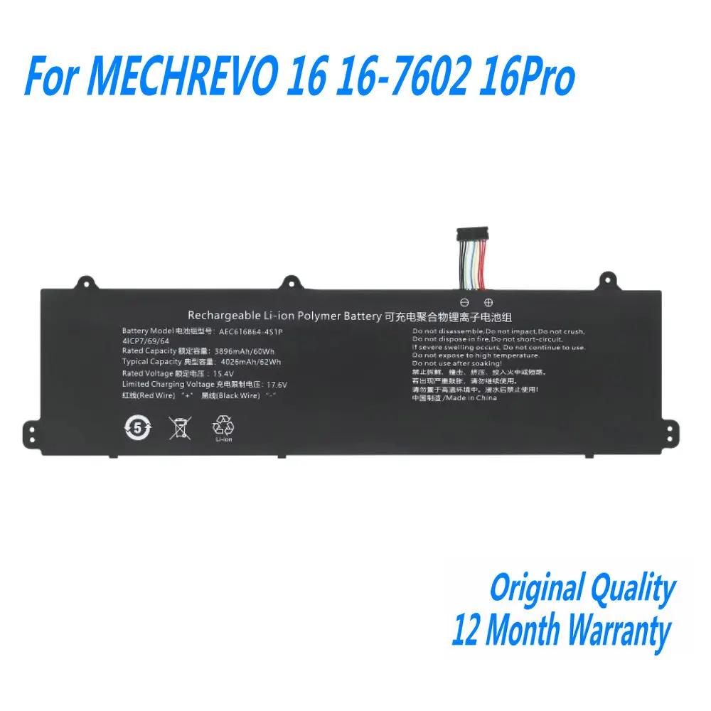 Comprar Nueva batería para ordenador portátil 15,4 V 60Wh 3896mAh para MECHREVO 16/ 16-7602/ 16Pro AEC 616864 -4S1P