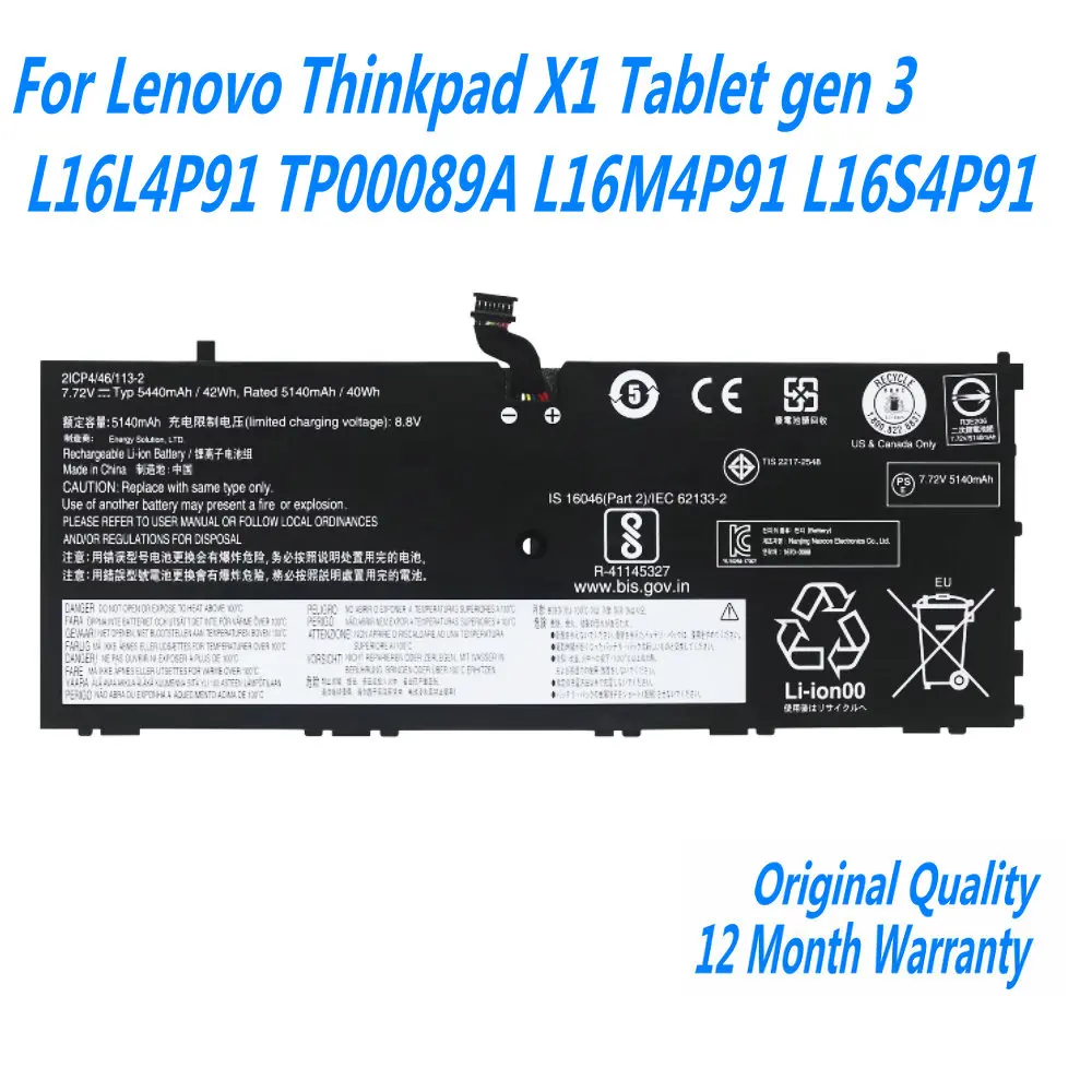 Comprar Nueva batería de ordenador portátil 7,72 V 5440mAh L16L4P91 para Lenovo Thinkpad X1 Tablet gen 3 TP00089A L16M4P91 L16S4P91