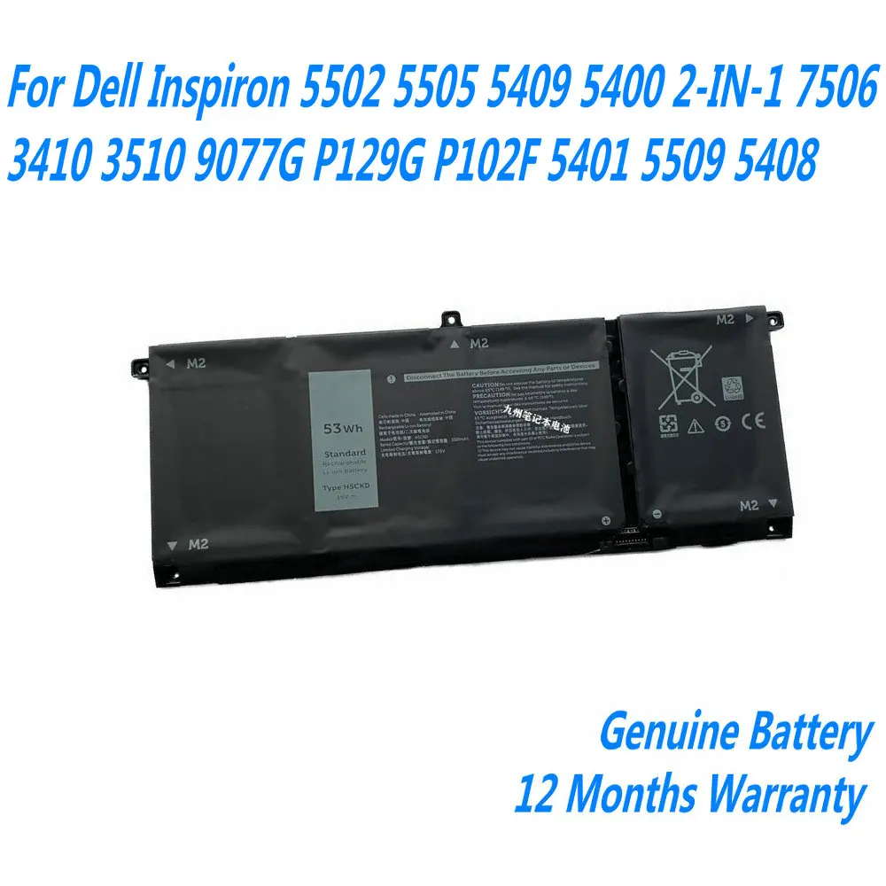 Comprar Nueva batería de ordenador portátil H5CKD para Dell Inspiron 5502 5505 5409 5400 2 en 1 7506 3410 3510 9077G P129G P102F 5401 5509 5408 53WH