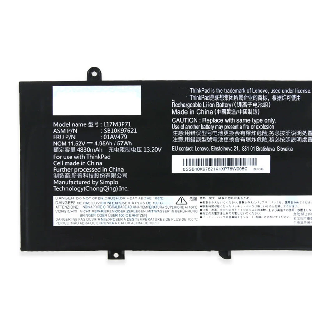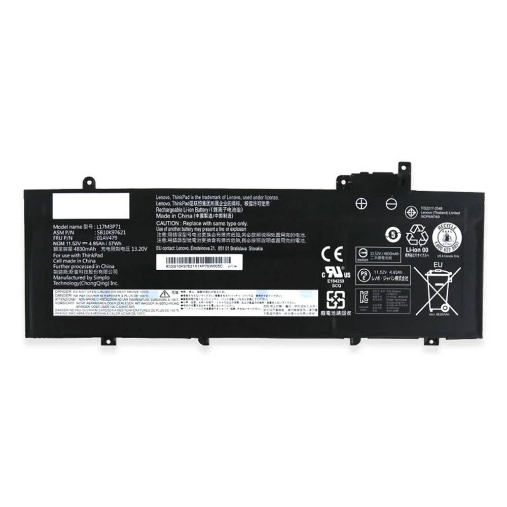 Comprar Nueva batería Original y genuina para ordenador portátil L17M3P71 11,58 V 57Wh para Lenovo ThinkPad T480s(20L7002XCD) 01AV480 01AV478 L17L3P71, etc.