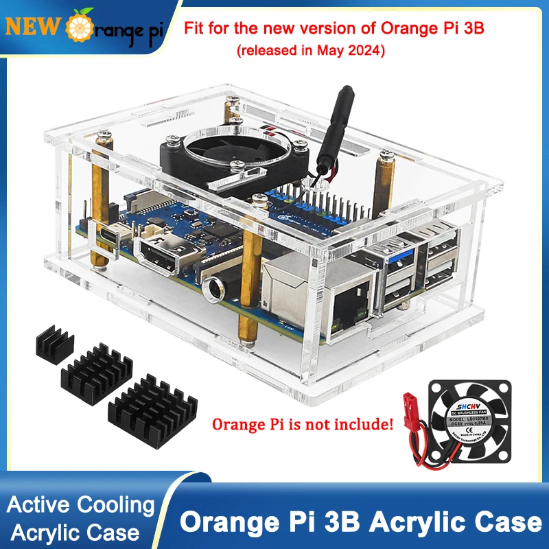 Caja acrílica Orange Pi 3B, carcasa transparente, carcasa de refrigeración pasiva activa, ventilador de refrigeración opcional, disipador de calor para Orange Pi 3B