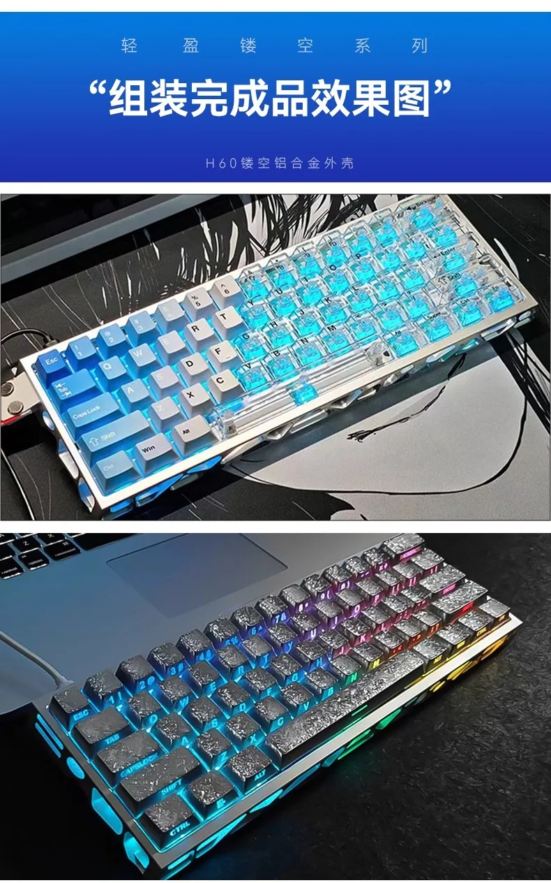 Nueva carcasa de teclado hueca Holy60 GH60, montaje en bandeja CNC de aluminio, funda de teclado mecánico personalizada, compatible con Mad60 Wooting60he Rakka