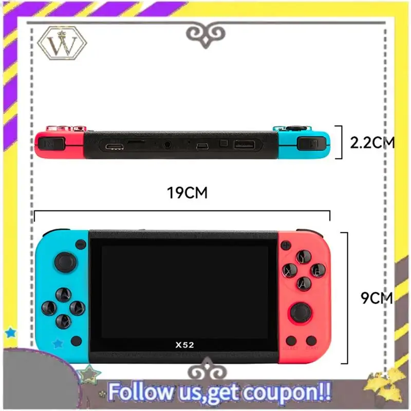 Nueva consola de juegos portátil X52 HD 5,1 pulgadas consola de juegos Retro portátil juegos clásicos Retro integrados reproductor de Audio y vídeo fácil de usar Modelo: X52