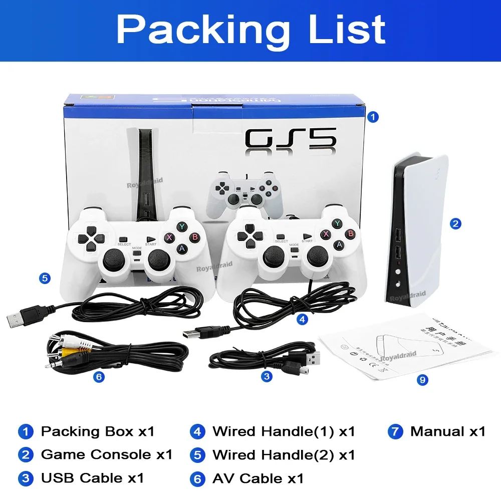 modname=ckeditorNueva consola de videojuegos GS5 Pro G620 con 620 juegos clásicos, consola de TV de 8 bits, USB portátil Retro, dos reproductores de juegos con cable, salida AVCaracterísticas【Juego clásico retro】: 620 juegos retro integrados en una mini caja de juego.Juega juegos gratis directamente cuando obtienes nuestra mini consola.No es necesario descargar el juego usted mismo.【Admite salida de TV】: conéctese al televisor mediante un cable AV y disfrute fácilmente de videojuegos animados e interesantes en la pantalla grande.【Soporte para juegos de dos jugadores】: Con un controlador USB con cable dual, puedes disfrutar fácilmente de juegos de dos jugadores con tus amigos y revivir fácilmente tu infancia【Regalos perfectos para adultos y niños】: Perfecto para adultos o niños (de 12 a 18 años) como regalo de cumpleaños.La consola de juegos clásica es una buena opción como regalo de Navidad, regalo de Acción de Gracias/Día de San Valentín.Especificación:Juegos integrados: 620 juegos retro.Salida: salida AVControlador: controlador con cable USB-Juego retro: 620 juegos clásicos integrados en una estación de juegos.Juega juegos gratis directamente cuando obtienes nuestra mini consola.No es necesario descargar el juego usted mismo.-Controlador con cable: viene con un controlador USB con cable dual. Conéctelo al puerto USB de la consola de juegos y juegue con su amigo.Apoye dos jugadores.-Conexión de TV: un cable AV incluido. Simplemente conecte el cable AV a la consola y al televisor.-Plug N play: Fácil de instalar.Conecte el cable AV a la consola y al puerto AV del televisor.Adaptador de enchufe para alimentación.Y luego elija la entrada AV en el televisor que mostrará el menú del juego. Después de eso, conecte el controlador para jugar.-Esta consola de juegos GS5 no puede agregar más juegos usted mismo. Solo admite jugar juegos integrados.Tampoco no pueden guardar juegos. No son consolas P5 org.Paquete incluido:1 mini estación de juegos G620,2 x controlador con cable USB,1 cable AV.1 cable de carga.1 manual.Nota:1. Permita un error de 0-1 cm debido a la medición manual.Por favor, asegúrese de que no le importe antes de ofertar.2. Debido a la diferencia entre diferentes monitores, es posible que la imagen no refleje el color real del artículo.¡Gracias!3.Si encuentra un paquete o productos dañados o faltantes, grabe un video claro para obtener el paquete completo y el peso real recibido, y contáctenos la primera vez. Así podremos resolverlo lo antes posible, gracias.PD:Si está interesado en otros accesorios de juego o desea vender al por mayor (20-50 unidades) o enviar nuestros productos directamente, no dude en contactarnos.