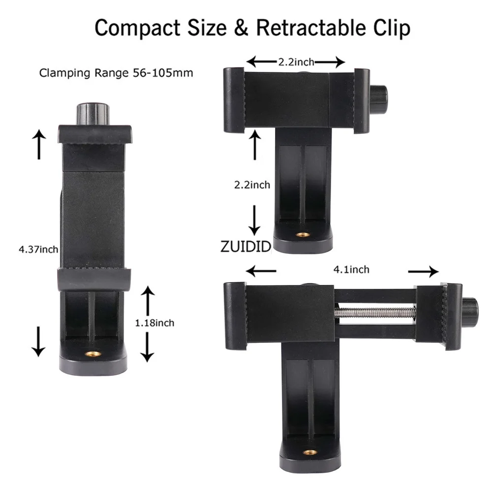 【Estructura estable】El soporte para teléfono inteligente tiene dos almohadillas de goma antideslizantes en la parte inferior y superior del soporte para teléfono;Cuando use la mini llave proporcionada para sujetar el tornillo largo al soporte con gancho en J, el clip del teléfono móvil estará de acuerdo con el ángulo ajustado, disparará estable y no se deslizará.