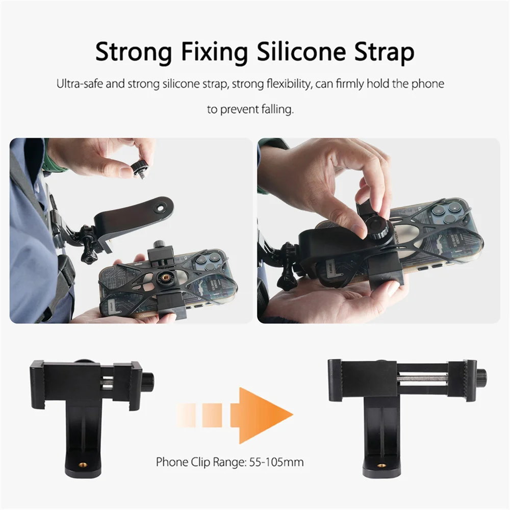 【Gran opción para POV/VLOG】El teléfono se puede colocar horizontal y verticalmente. El diseño del gancho en forma de J y el tornillo largo pueden hacer que el teléfono gire 90.°, El tamaño de esta correa es fácilmente ajustable, se ajusta incluso a las chaquetas de invierno más grandes y se adapta a una amplia gama de tamaños de cuerpo.