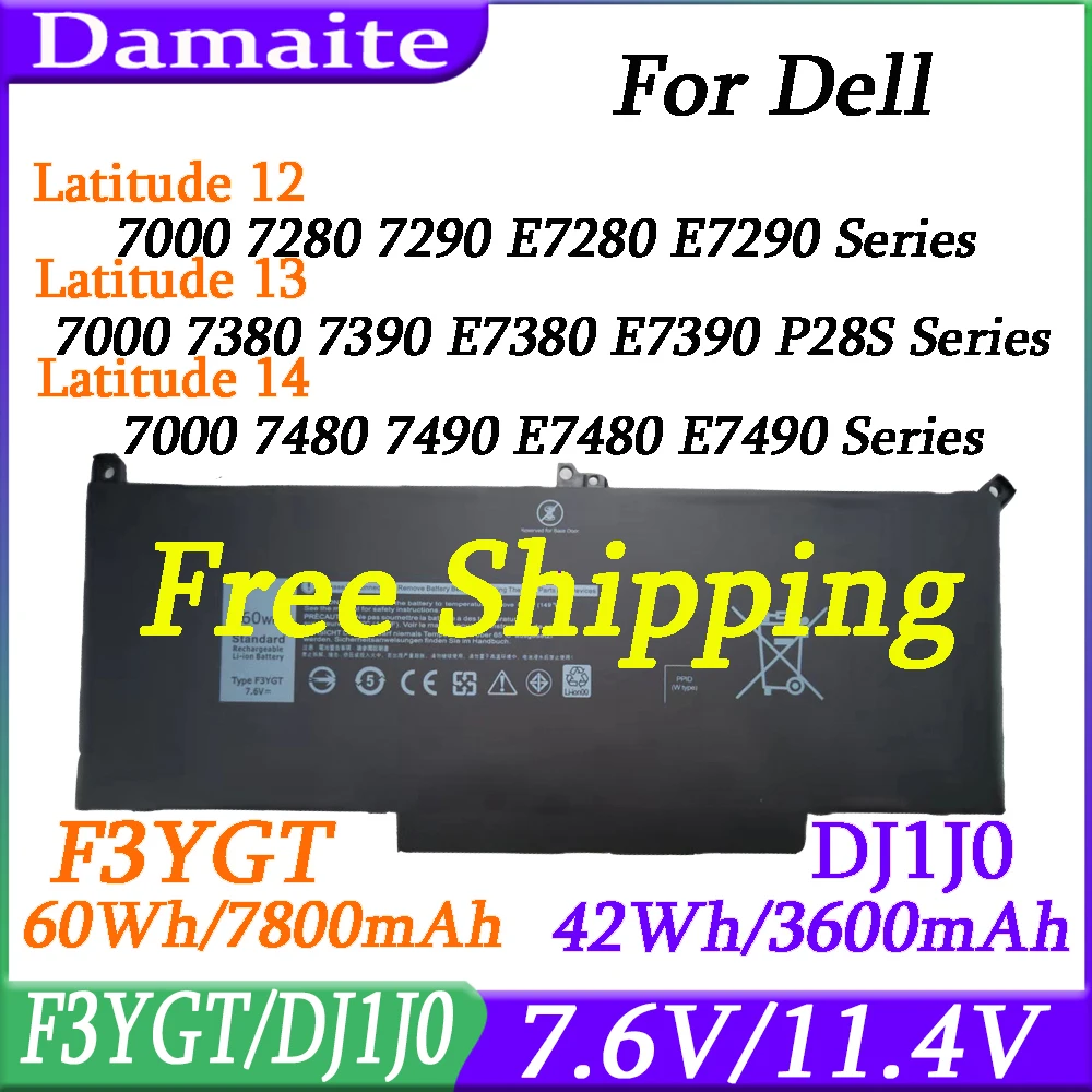 Comprar Nueva F3YGT DJ1J0 batería para Dell 7480 2x39G Latitude 12 7000 7280 7290 E7280 E7290 E7380 E7390 13 7000 7380 7390 14 74807490