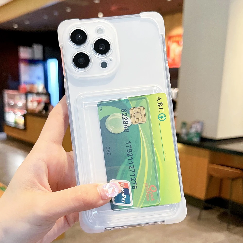 Funda transparente con tarjetero para iPhone 16 15 14 Pro Max Plus, cartera Airbag a prueba de golpes, funda suave transparente para iPhone 13 12 11 Pro Max
