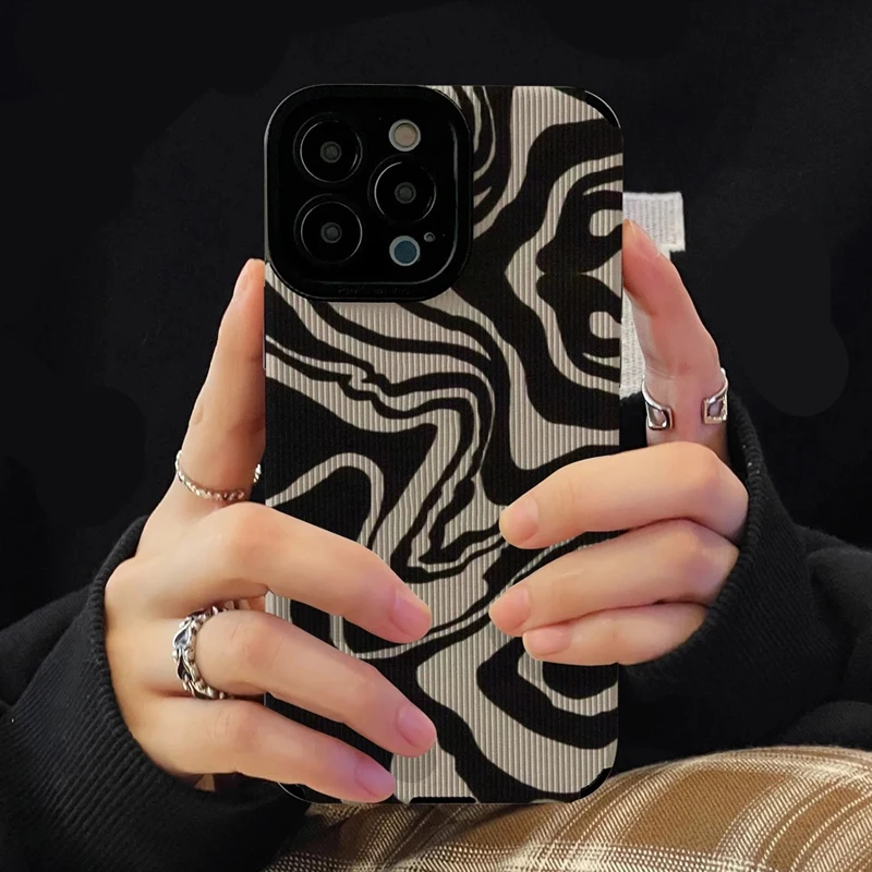 Nueva funda de teléfono antiarrugas con rayas de cebra para iPhone 13 12 11 14 15 Pro Max Mini 8 7 16 Plus SE X XS XR cubierta completa de silicona a prueba de golpes