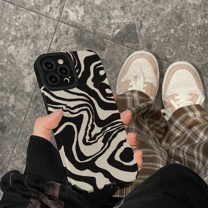 Comprar Nueva funda de teléfono arrugada con raya de cebra para iPhone 13, 12, 11, 14, 15 Pro Max Mini 8, 7, 16 Plus SE X XS XR, funda completa de silicona a prueba de golpes