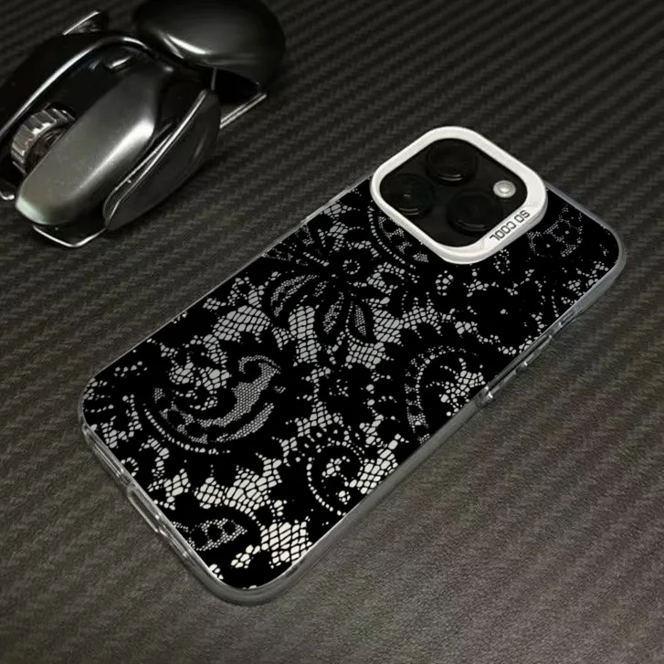 Funda de teléfono plateada con electrochapado en blanco y estampado de encaje negro para Xiaomi 15 14T 13 12 13T Pro 11 Lite NE, funda Sexy de moda para chica