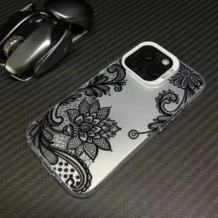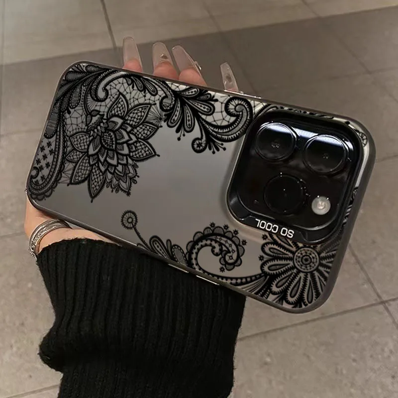 Nueva funda de teléfono plateada electrochapada con estampado de encaje negro para Xiaomi 15 14 14T 13 12 13T Pro 11 Lite NE, funda Sexy de moda para chica