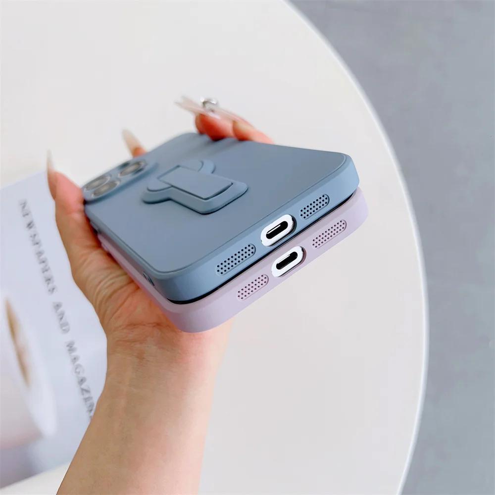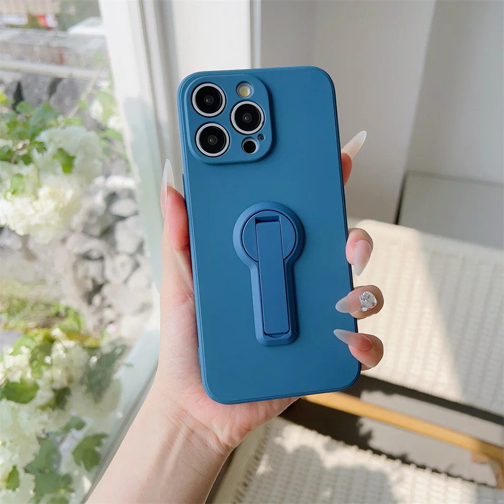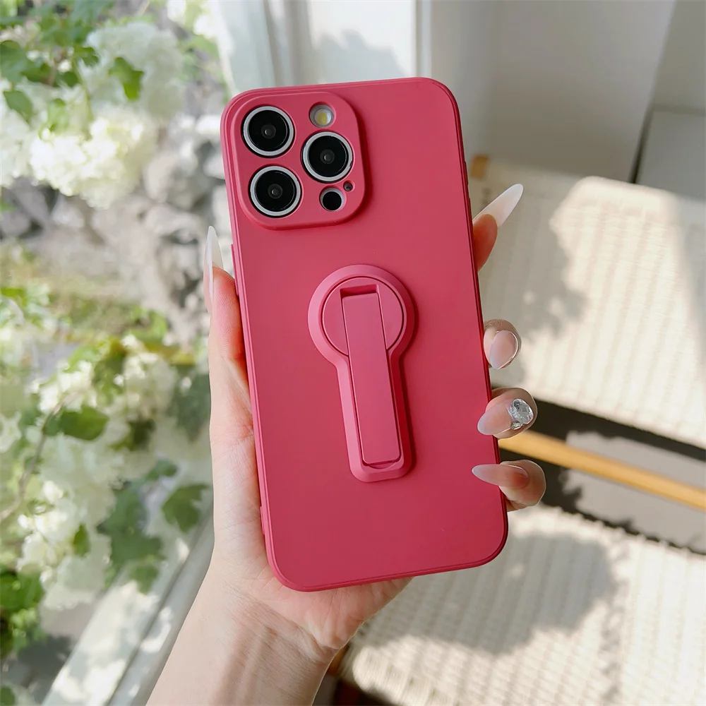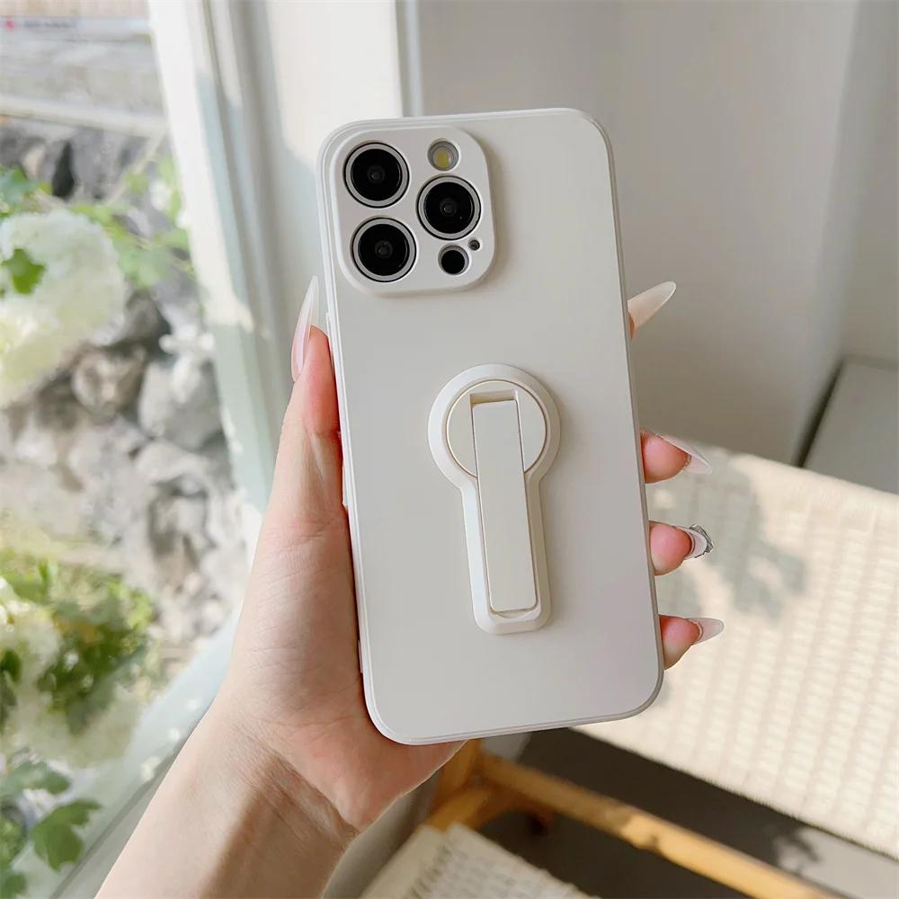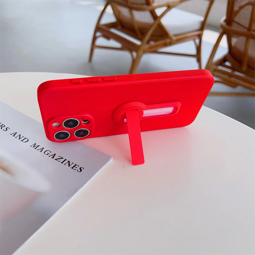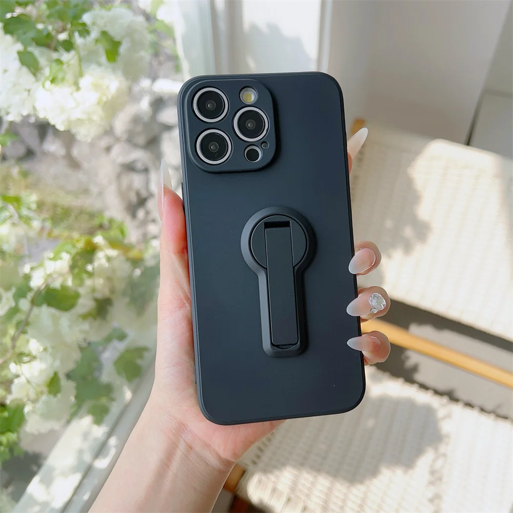 Funda de teléfono con soporte plegable oculto para iPhone 17 15 16 Plus 14 13 12 11 Pro Max X XR XS, funda de silicona mate, novedad de lujo