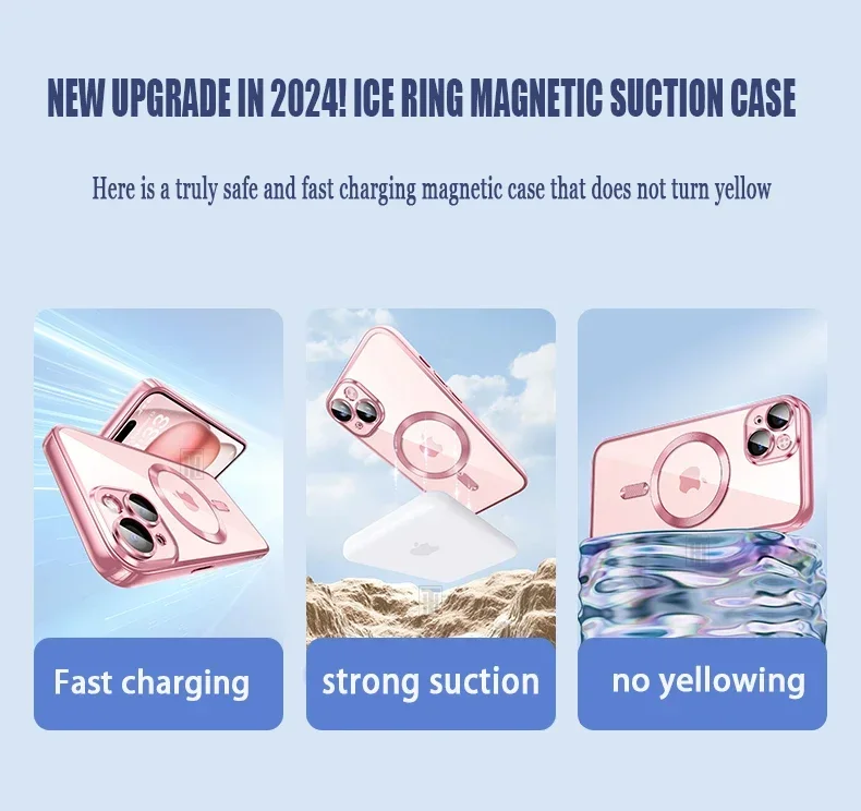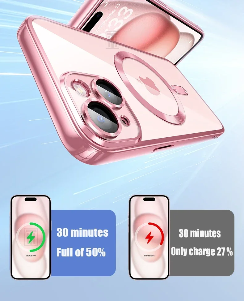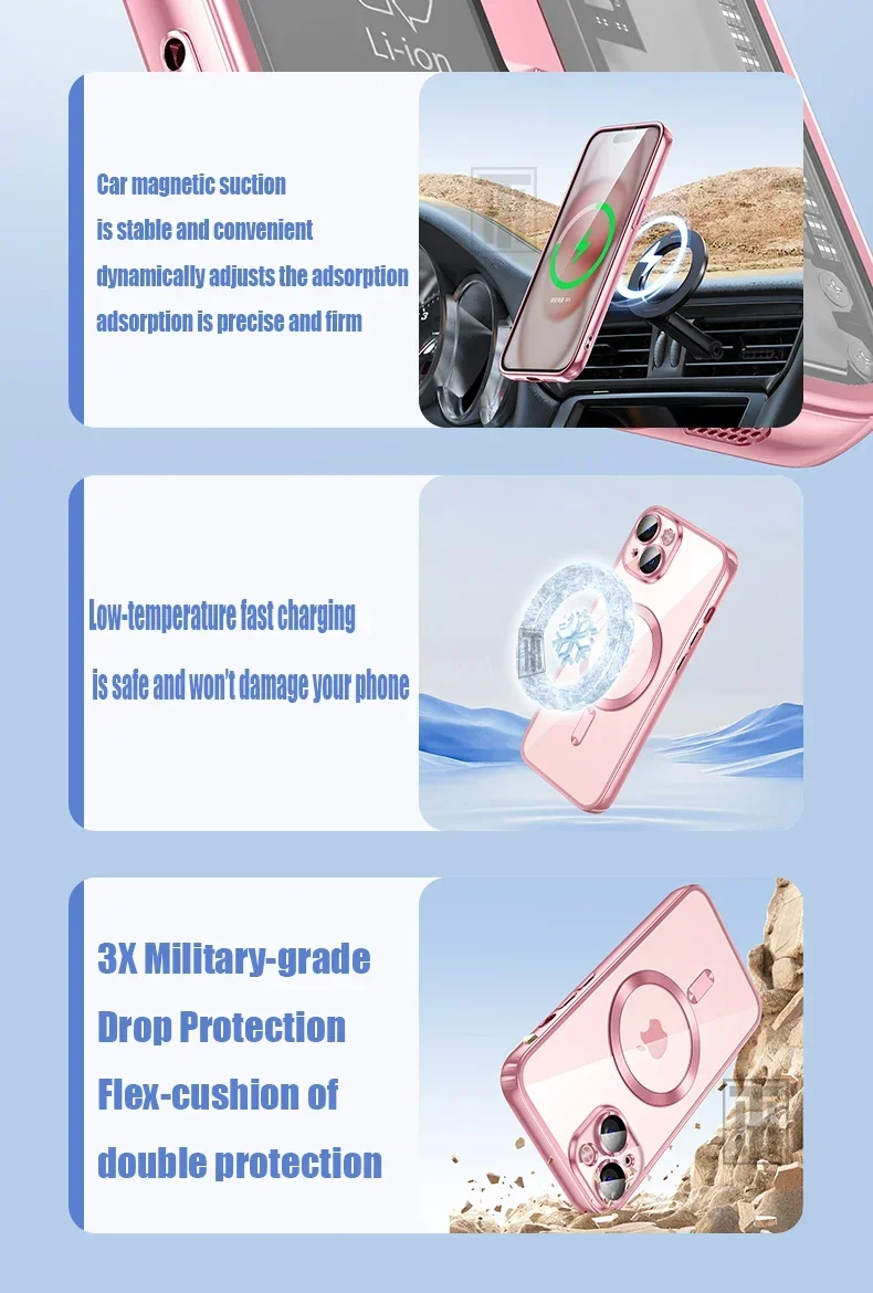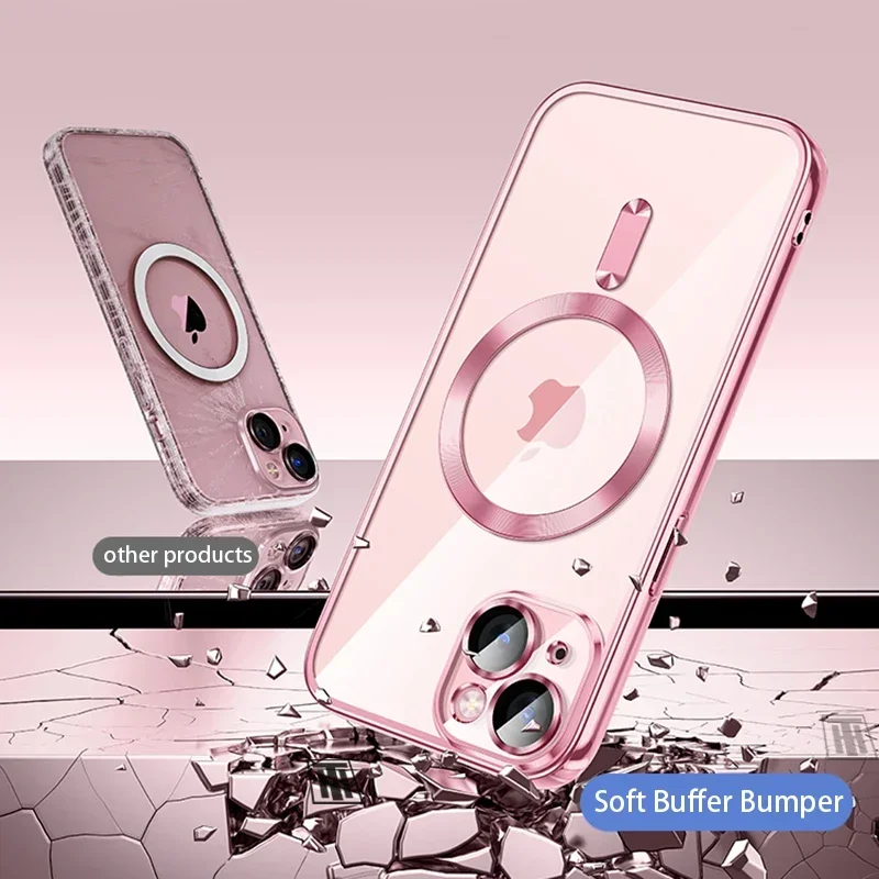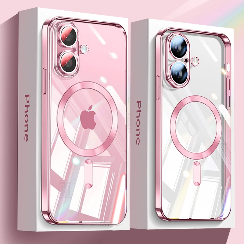 Nueva funda de TPU antideslizante chapada en serie 16 para iPhone 16 15 14 13 12 11 Pro Max Plus Magsafe película de lente magnética proteger cubierta transparente