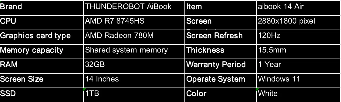 ¡Nueva llegada! ThundeRobot Aibook14Air 14 pulgadas AMD R7-8745HS 2.8K 32GB 1T SSD portátil de oficina AI ultrafino de alto rendimiento blanco