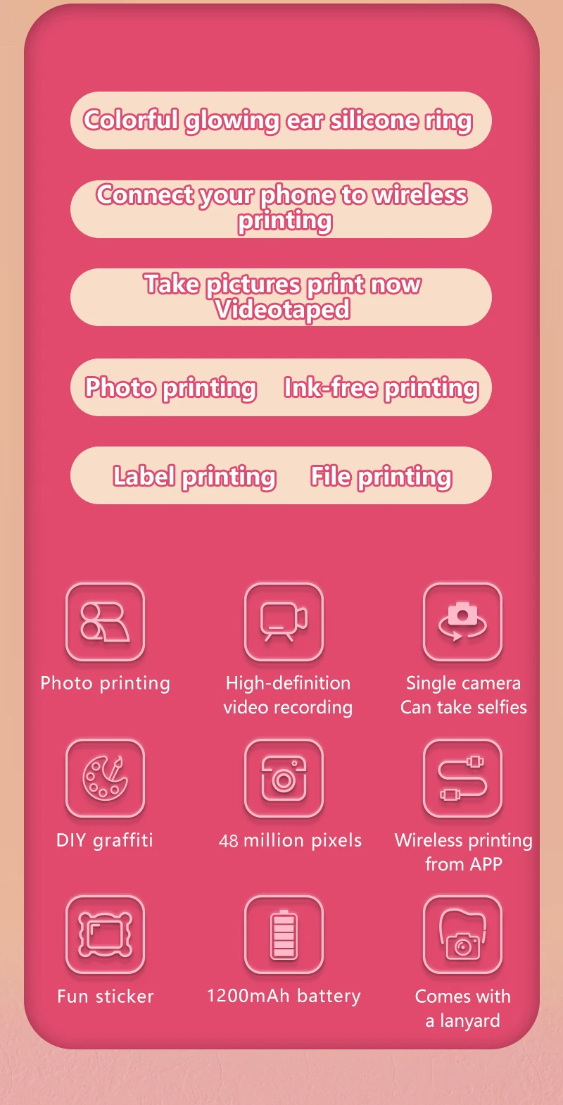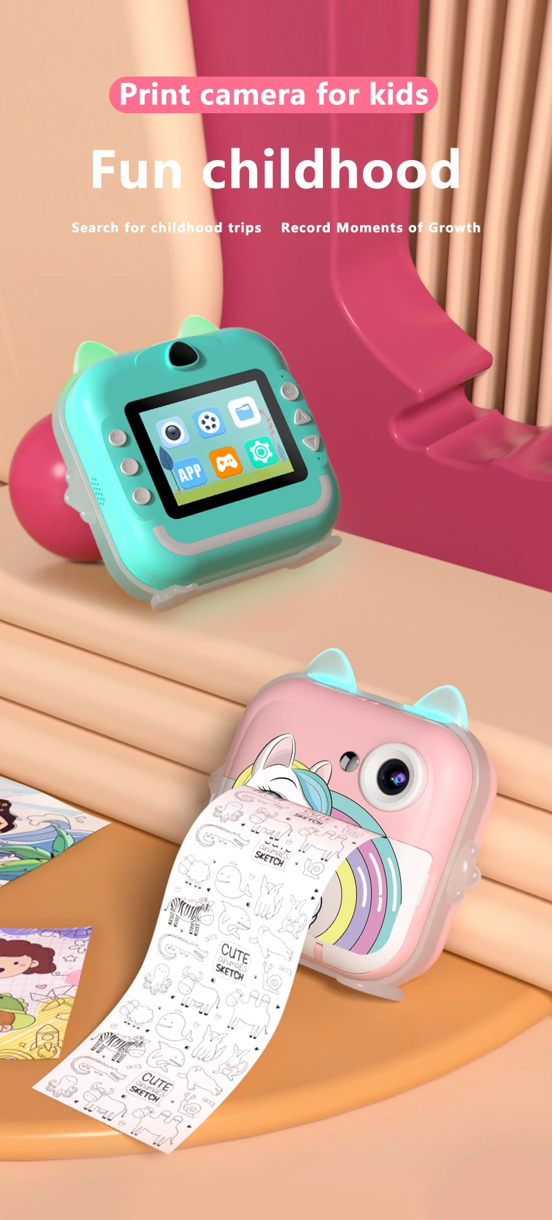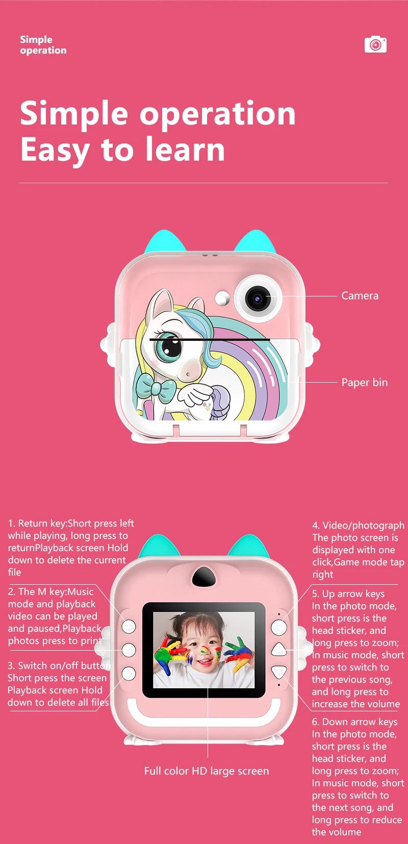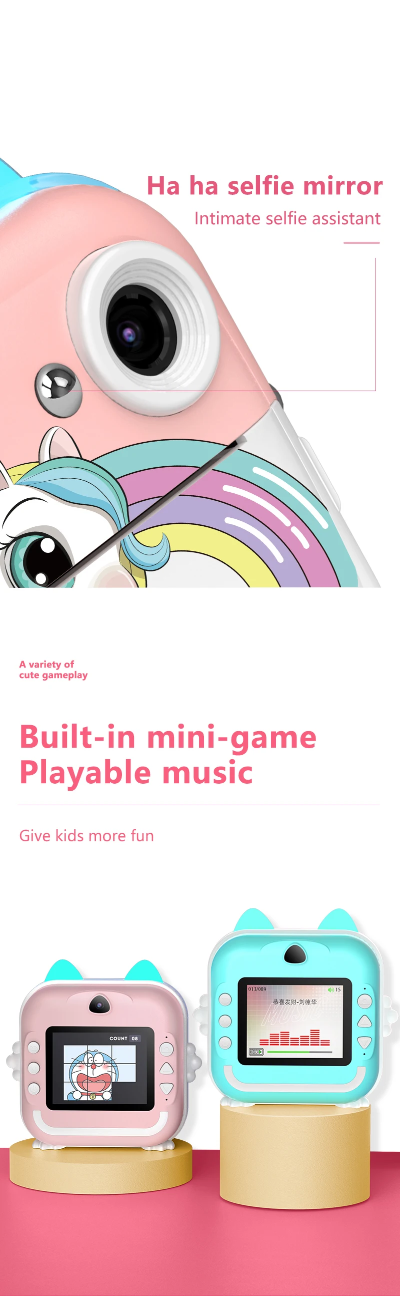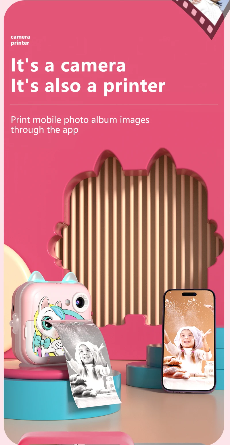 Nueva Mini cámara Digital para niños, pantalla de impresión instantánea, fotografía, vídeo, papel térmico, Bluetooth, HD, puerta exterior, regalos de cumpleaños para niños