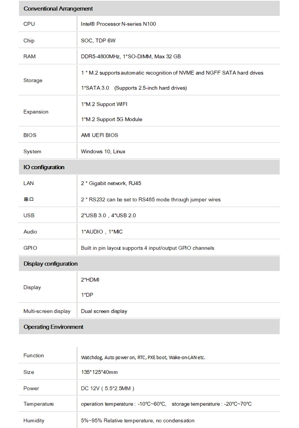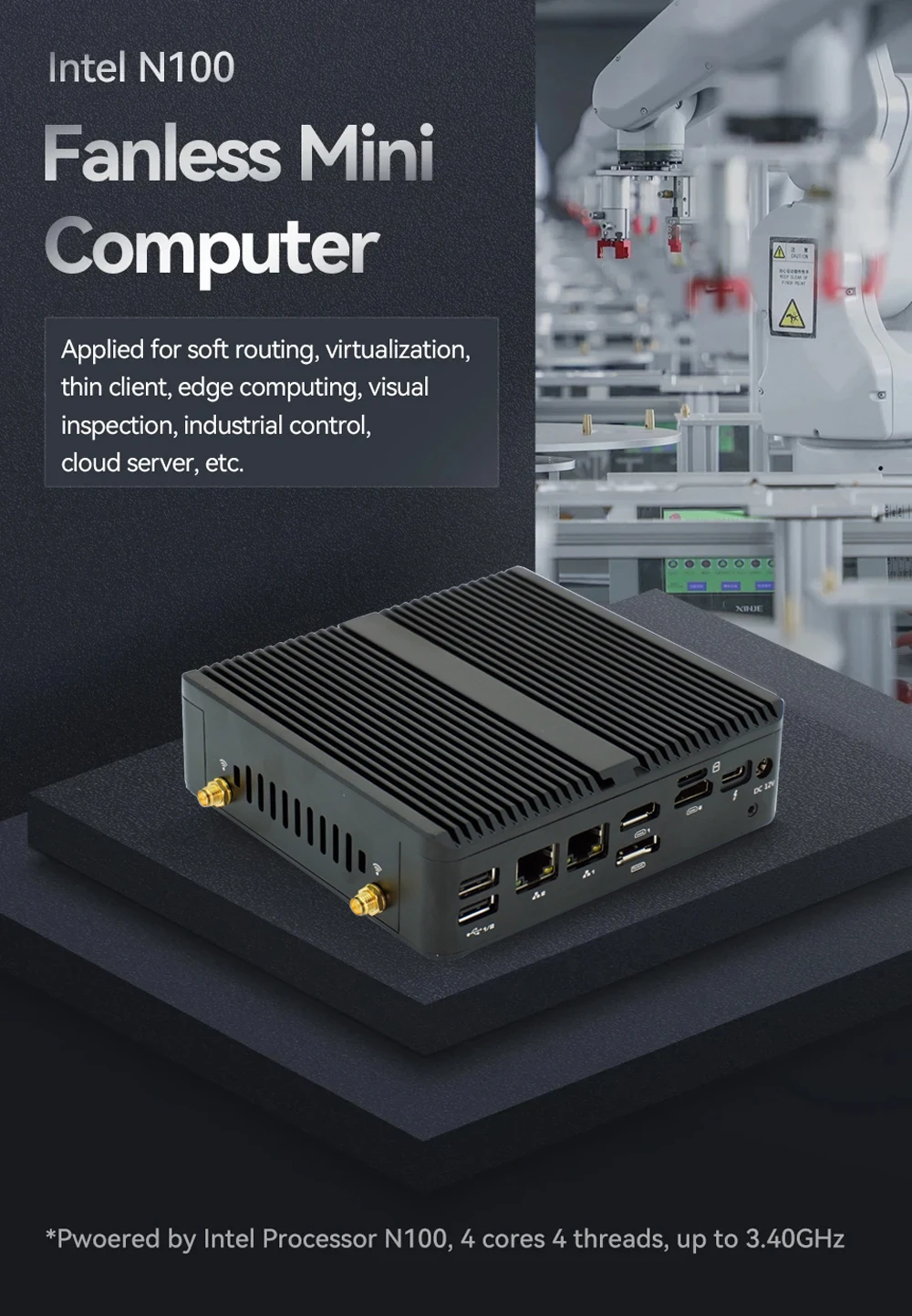 Comprar Nueva Mini PC industrial sin ventilador Intel Alder Lake N100 2 * HD 1 * DP 1 * LAN dual tipo C RJ45 ordenador de escritorio de oficina 2 * COM RS232 5G SIM