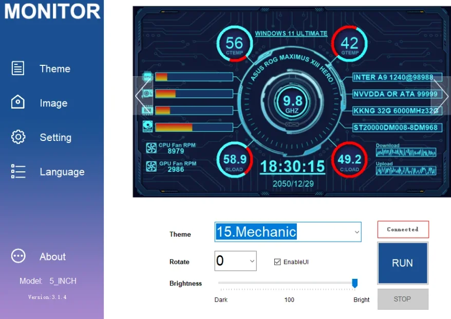 Conecte la mini pantalla secundaria a su computadora y luego inicie nuestro software personalizado, sin necesidad de AIDA64, sin necesidad de otras configuraciones engorrosas
