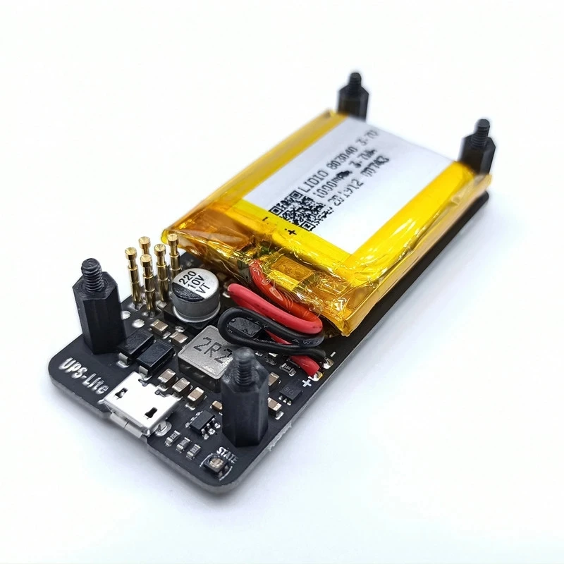 El circuito alimentado por batería está optimizado, El MOS de resistencia de encendido Ultra baja se utiliza para el control de la fuente de alimentación, lo que mejora la duración de la batería.Introducción:UP-Lite es una fuente de alimentación UPS especialmente diseñada para Raspberry Pi Zero.La placa integra el chip del indicador de combustible (MAX17040G), una pieza 1000mAhEl uso del método de instalación del dedal, simple y generoso.El tiempo de espera de prueba real es de hasta 6 horas (condición de prueba: cero wTurn en la red e imprimir los parámetros de potencia cada 2 segundos).Parámetro:Corriente de carga: 400mAVoltaje de salida: 5V ± 0,1 VCorriente de salida: 1.3A @ 5V (sin adaptador externo, solo alimentado por batería)2A @ 5V (al insertar un adaptador externo)Precisión de medición de electricidad: error ± 2%1000mAh Batería incluida