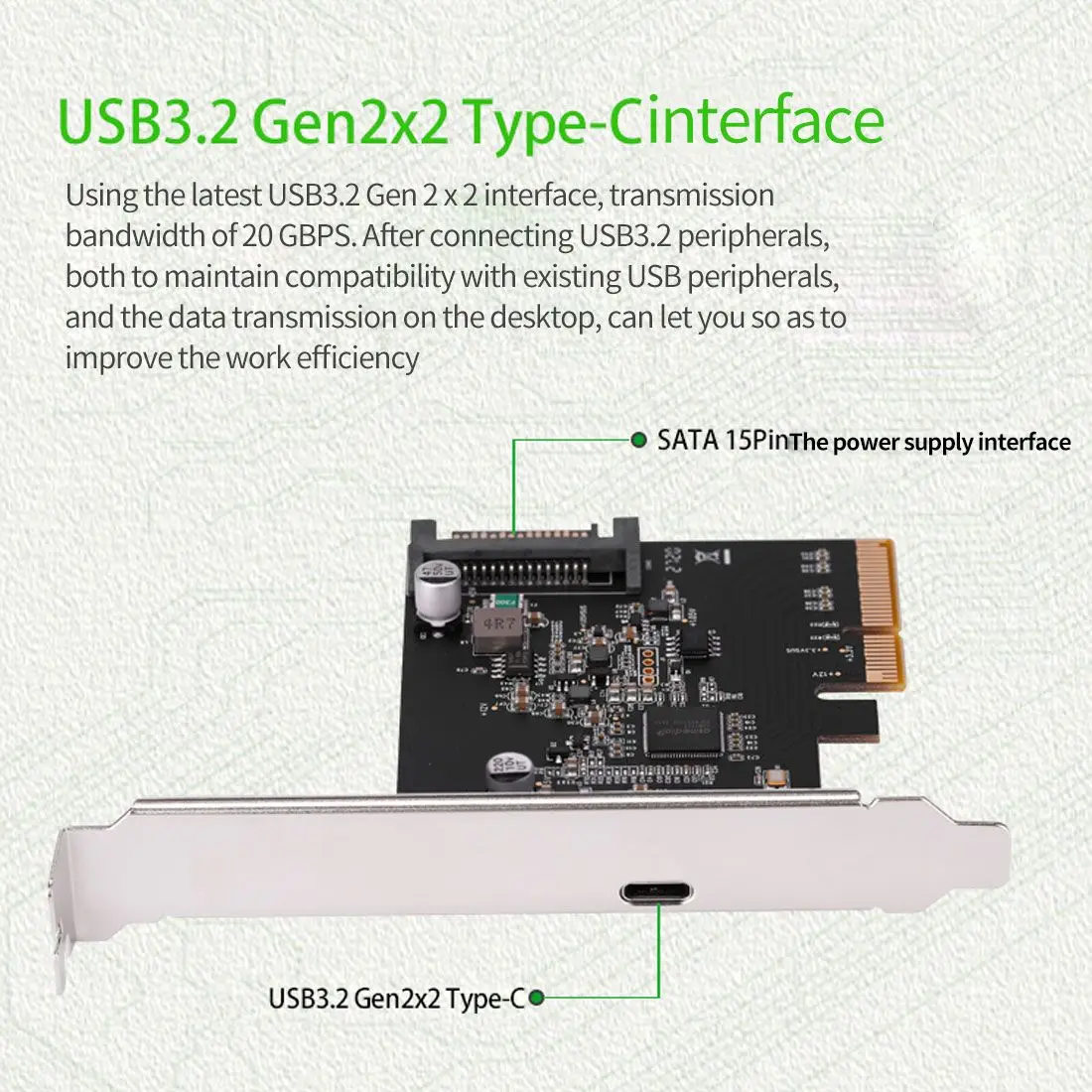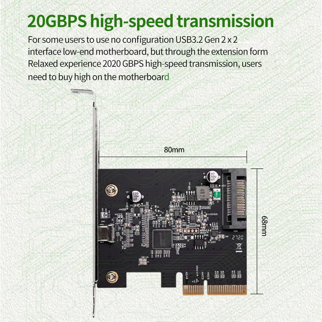 Comprar Nueva tarjeta de expansión USB 3,2 PCIE PCI Express PCI-E 4X a USB3.2 Gen2 x2 tipo-c tarjeta controladora de Host 20Gbps para escritorio