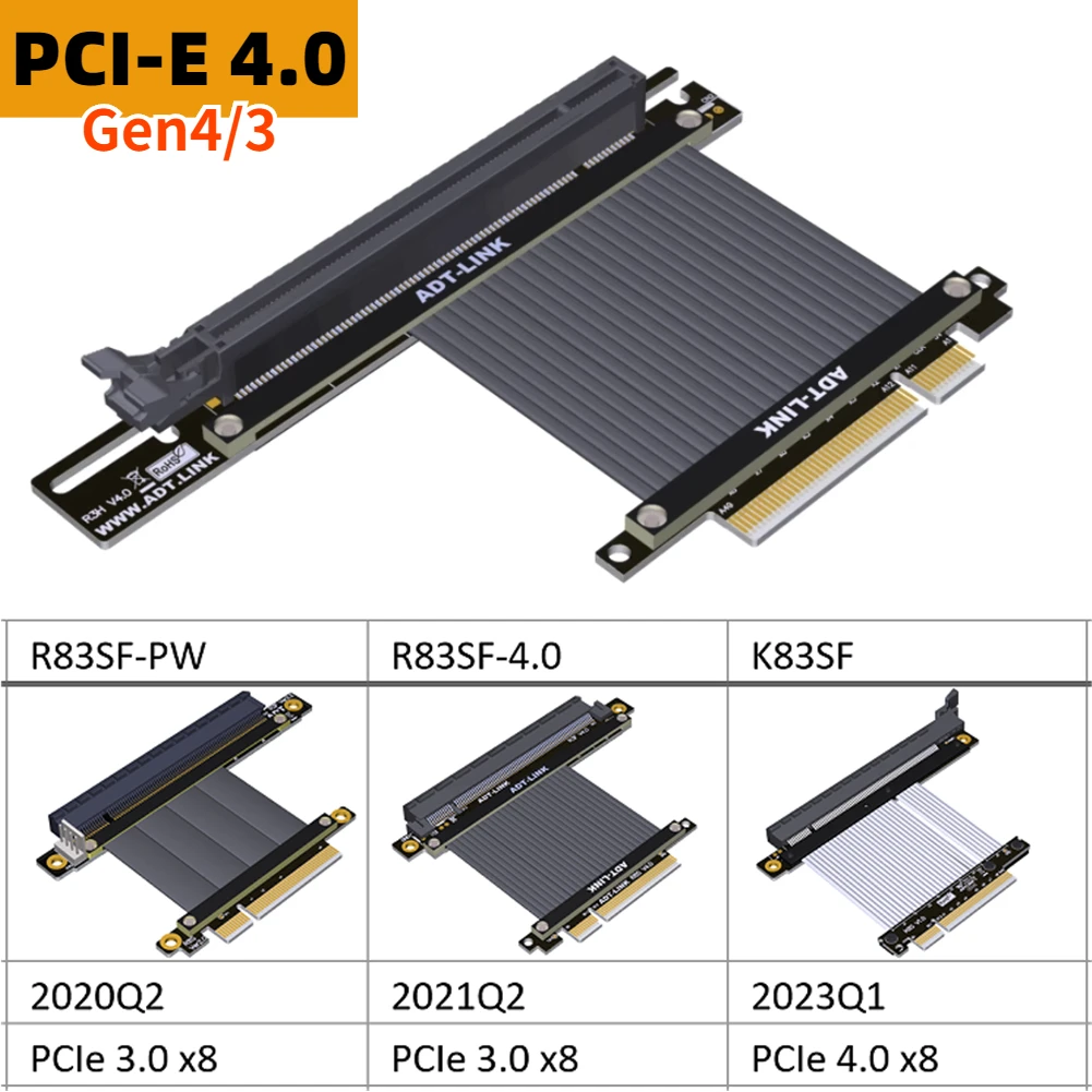 El cable es la cuarta generación de cable PCIe dedicado desarrollado y diseñado por ADT. El grosor del cable negro es de 1,3mm, el cable plateado es de 1,4mm y el cable azul es de 0,85mm. El cable se puede doblar y plegar sin afectar el uso.