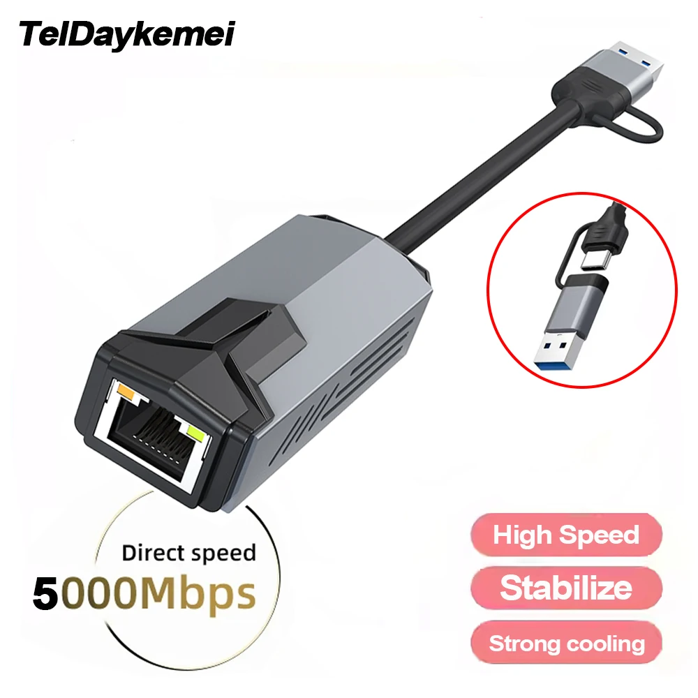Comprar Nueva tarjeta de red 5G con cable USB 3,0 tipo C RTL81527 adaptador 5000Mbps de alta velocidad para MacBookPro Notebook ordenador de escritorio tableta