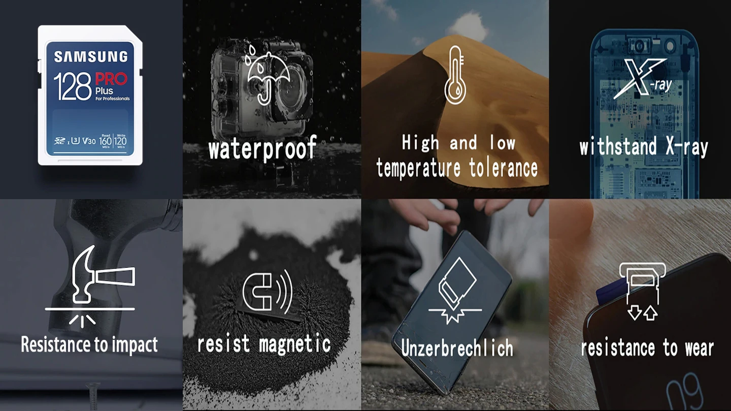 Tarjeta SD Samsung, diseñada para profesionales.La capacidad diversificada y el potente rendimiento son adecuados para fotógrafos y otros profesionales.Las marcas de almacenamiento profesionales y la calidad confiable hacen que su equipo sea aún más potente.