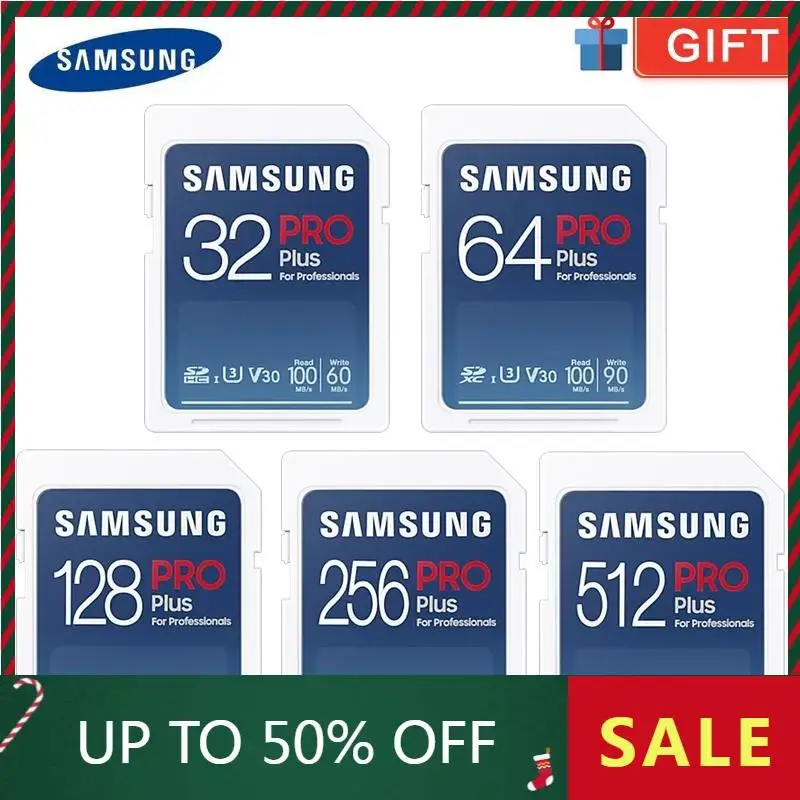 Comprar Nueva tarjeta SD Samsung, cámara Digital profesional SDXC de alta velocidad 180 MB/S 4K U3, tarjeta de memoria para cámara 64GB 128GB 256GB 512gb PRO Plus