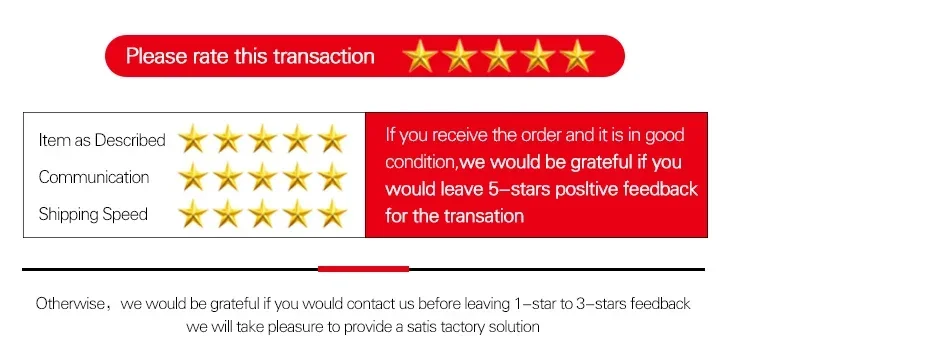 Por favor danosComentarios positivos de cinco estrellas.Tu comentario es muy importante para nosotros.